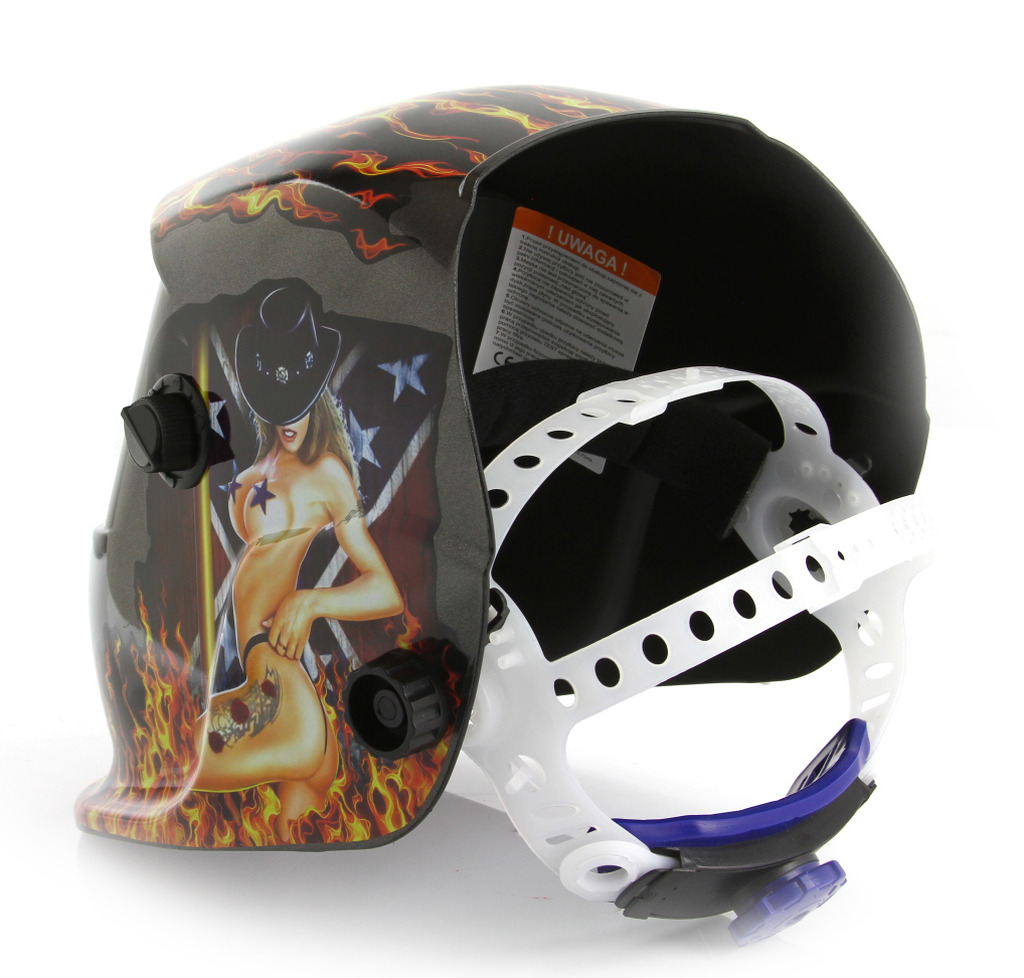 Wysokiej jakości przyłbica samościemniejąca. Maska nadaje się do spawania wieloma metodami spawania łukowego: MIG, TIG, MAG, MMA. Chroni użytkownika przed szkodliwym promieniowaniem powstającym podczas spawania oraz przed iskrami i odpryskami. Specjalny czujnik umieszczony w kasecie filtrującej automatycznie identyfikuje rozpoczęcie procesu spawania, uruchamiając funkcję samo-zaciemnienia. Po zakończeniu pracy filtr samoczynnie wraca do stanu rozjaśnienia. Filtr jest zasilany wewnętrznymi bateriami, które ładują się samoczynnie za pośrednictwem ogniw słonecznych. Maska wyposażona jest w wielostopniową regulację umożliwiającą dostosowanie jej do wielkości głowy użytkownika. Dzięki niedużej wadze jest bardzo wygodna w użyciu. Maska wyposażona w trzy przełączniki: Dane techniczne: Waga: ok. 450gMASKA OCHRONNA SPAWALNICZA PRZYŁBICA SAMOŚCIEMNIAJĄCA Z REGULACJĄ FILTR