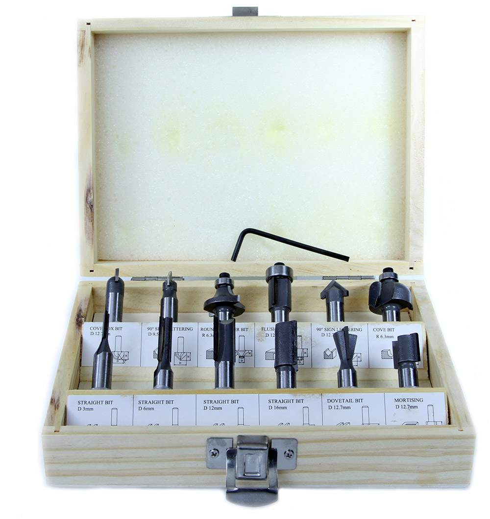 Zestaw 12-stu frezów daje Ci wielkie możliwości wykonania każdego projektu. W celu bezpiecznego przechowywania narzędzi, zestaw ten jest oferowany w praktycznym, wykonanym z twardego drewna pudełku. Frezy wysokiej jakości ze stali węglowej z ostrzami wykonanymi z węglika wolframu. Frez posiada zamocowanie we wrzecionie o średnicy 8 mm.