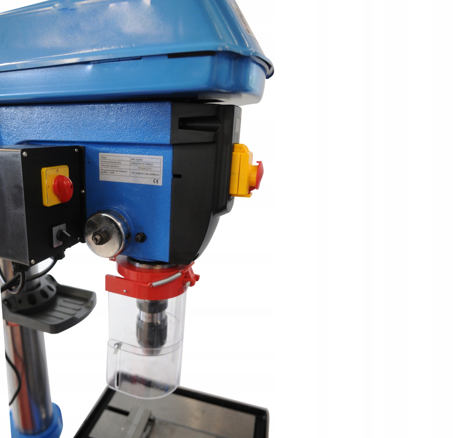 Stacjonarna wiertarka stołowa przeznaczona do pracy ciągłej, do prac wiertarskich w warsztatach i zakładach przemysłowych o małych i średnich przerobach. Wiertarka napędzana paskiem klinowym, 60-3480 obrotów na minutę umożliwia dopasowanie parametrów wiertarki do wymagań wykonywanej pracy i obrabianego materiału. Mocny silnik 1500W napędzający głowicę wiertarki kolumnowej gwarantuje precyzyjne i efektywne wiercenie oraz stabilność pracy.. Wiertarka wyposażona w możliwość regulacji głębokości wiercenia, płynną regulację wysokości blatu roboczego, zabezpieczenie włącznika, zabezpieczenie przed przypadkowym otwarciem osłony. Solidna, prosta konstrukcja wiertarki stołowej zaprojektowana z uwzględnieniem standardów wytrzymałościowych dla zapewnienia bezawaryjnego okresu eksploatacji. Cechami charakterystycznymi wiertarki kolumnowej są ciągła praca pod dużymi obciążeniami, wysoka jakość wykonania i optymalne parametry wiercenia. ✅ DANE TECHNICZNE: W ZESTAWIE ✔️ Imadło maszynowe 6'' ✔️ Uchwyt wiertarski: 16mm ✔️ B22Półka na wiertła ✔️ Stół roboczy ✔️ Kabel zasilający 2m ✔️ Mufa 5 bolców 18cm ✔️ Przezroczysta osłona główki zapewniająca bezpieczeństwo pracy ✔️ Klucz do wybijania uchwytu wiertarki ✔️ Klucze do montażu wiertarki