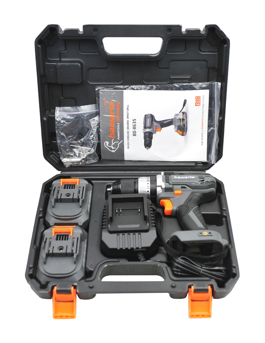 Model ten oferuje 2 biegi robocze:1. bieg (0–400 obr./min) – do precyzyjnego wkręcania2. bieg (0–1800 obr./min) – do szybkiego wiercenia 18-stopniowa regulacja sprzęgła pozwala na dokładne dostosowanie momentu obrotowego do rodzaju materiału, chroniąc śruby i powierzchnie przed uszkodzeniem. Funkcja udaru umożliwia wiercenie w twardych podłożach, takich jak beton czy cegła. Zestaw zawiera dwa akumulatory 2A oraz ładowarkę, które umożliwiają ciągłą pracę bez zbędnych przerw》》》 WIERTARKO WKRĘTARKA AKUMULATOROWA UDAROWA 55NM 2x AKU 20V 2Ah BAWARIA BD8635 《《《