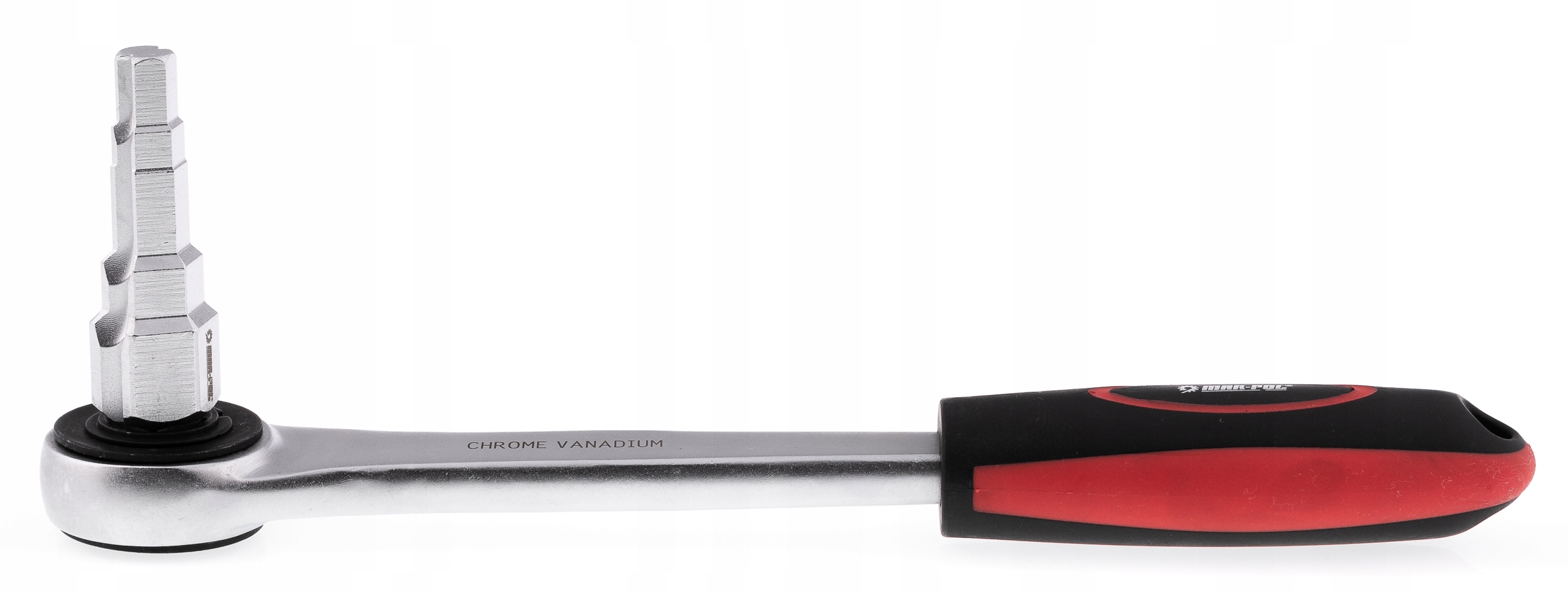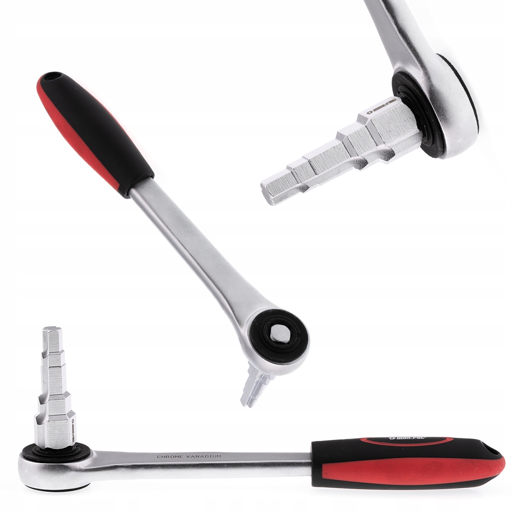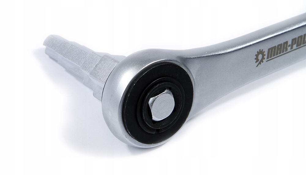SZTORCOWY KLUCZ RENOMOWANEJ POLSKIEJ MARKI MAR-POL Mechanizm grzechotkowy z 30 zębami o mocnej i trwałej konstrukcji. Budowa przelotowa o napędzie 1/2" umożliwia zmianę kierunku pracy poprzez obrót o 180°. Antypoślizgowa rękojeść o ergonomicznym kształcie zwiększa komfort pracy. Producent: Mar-Pol Model: M55250 Materiał: wysokogatunkowa stal chromowo-wanadowa (CrV) Stopniowanie klucza: 3/8", 7/16", 1/2", 3/4", 1" Gniazdo grzechotki: 1/2"KLUCZ STOPNIOWY DO ŚRUBUNKÓW Z GRZECHOTKĄ 1/2" M55250