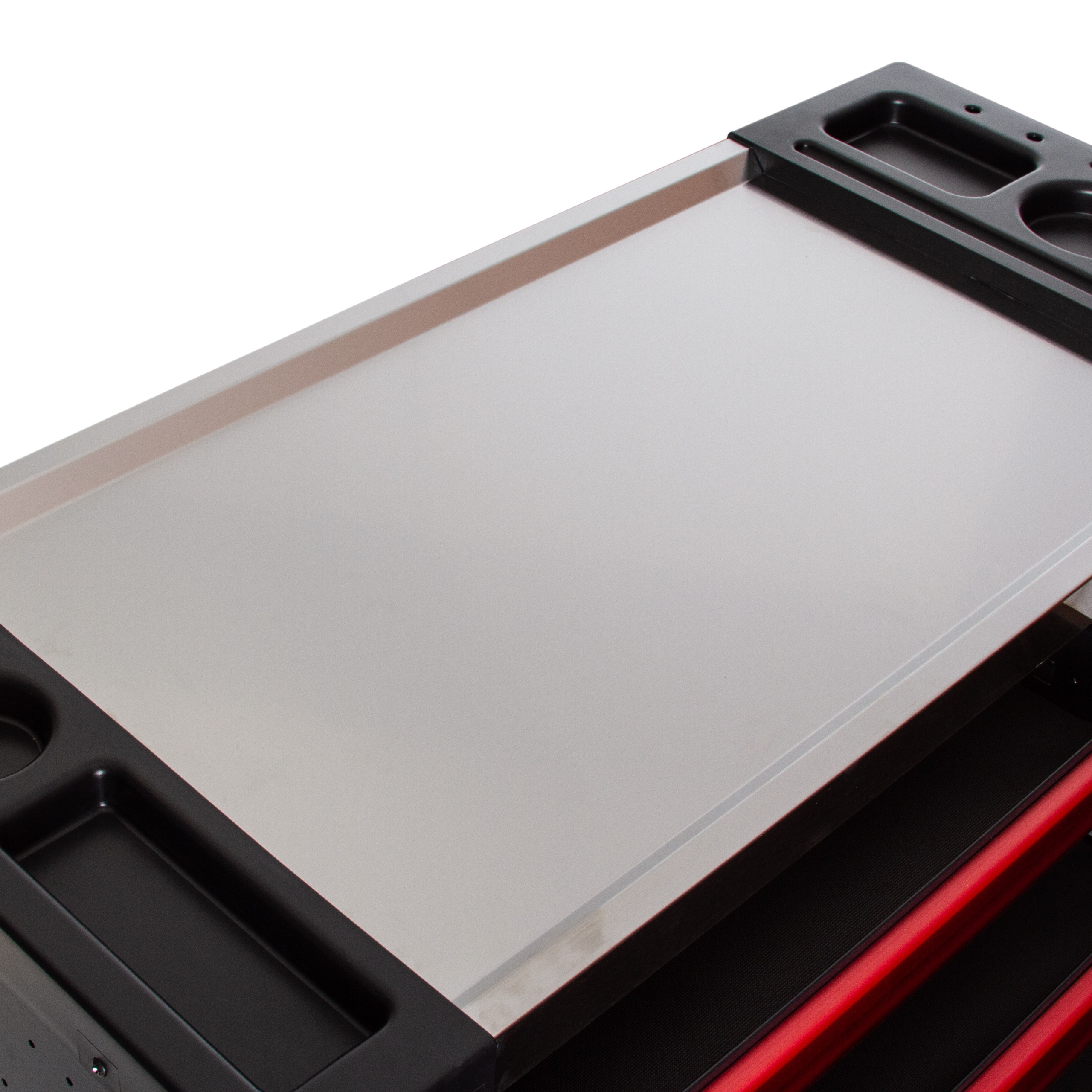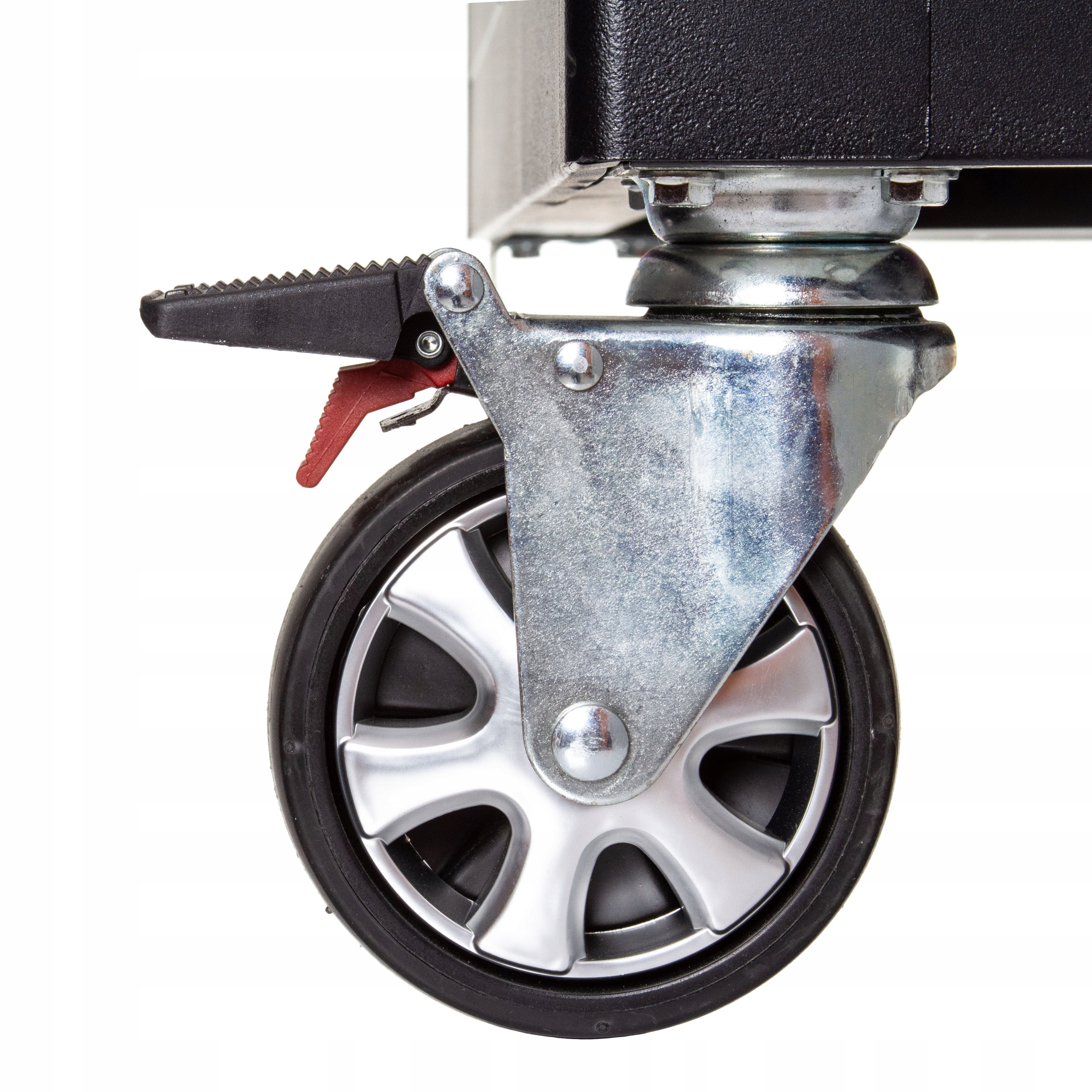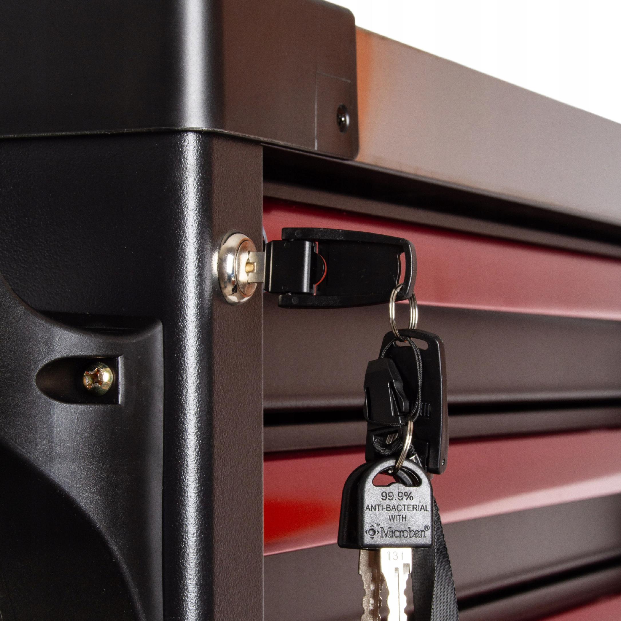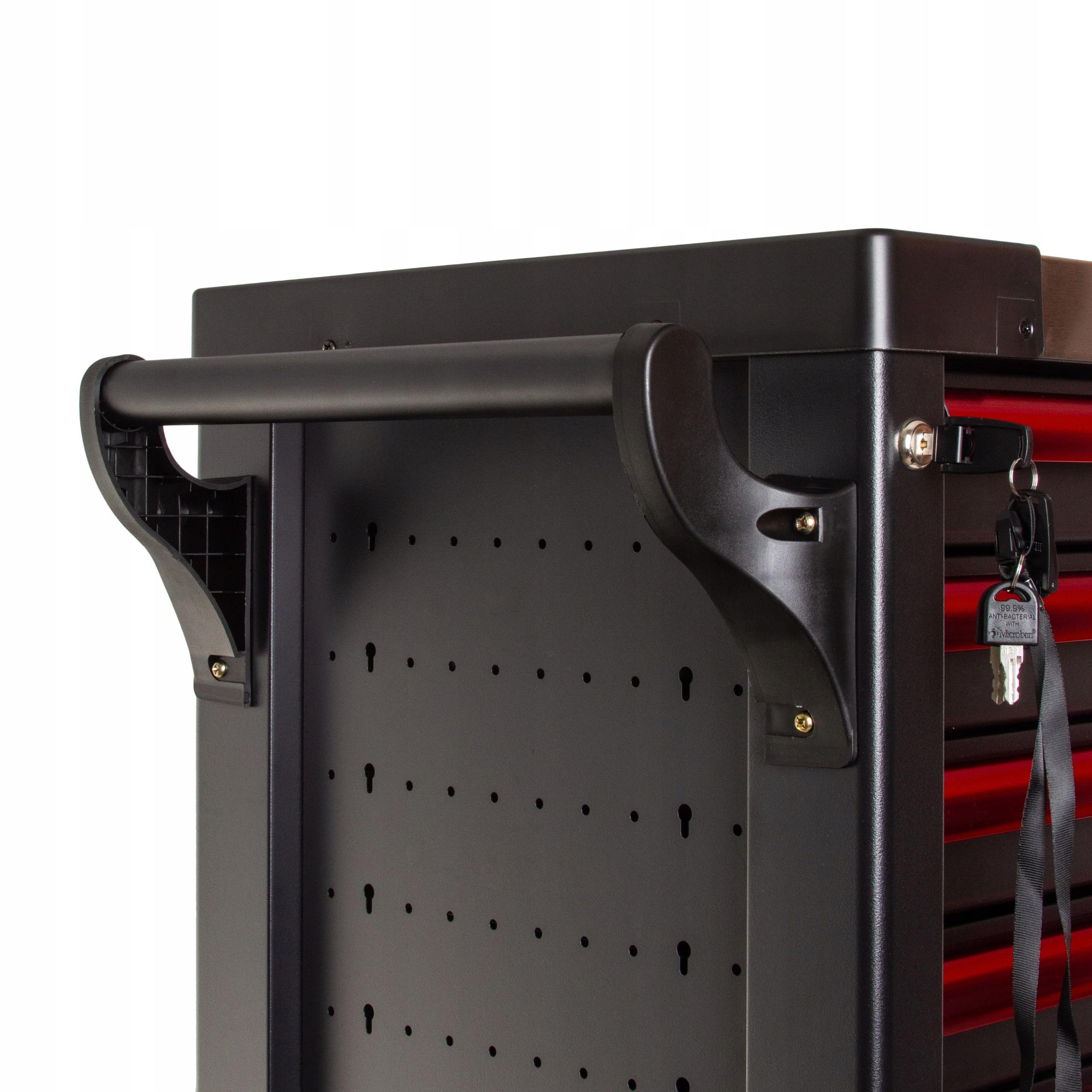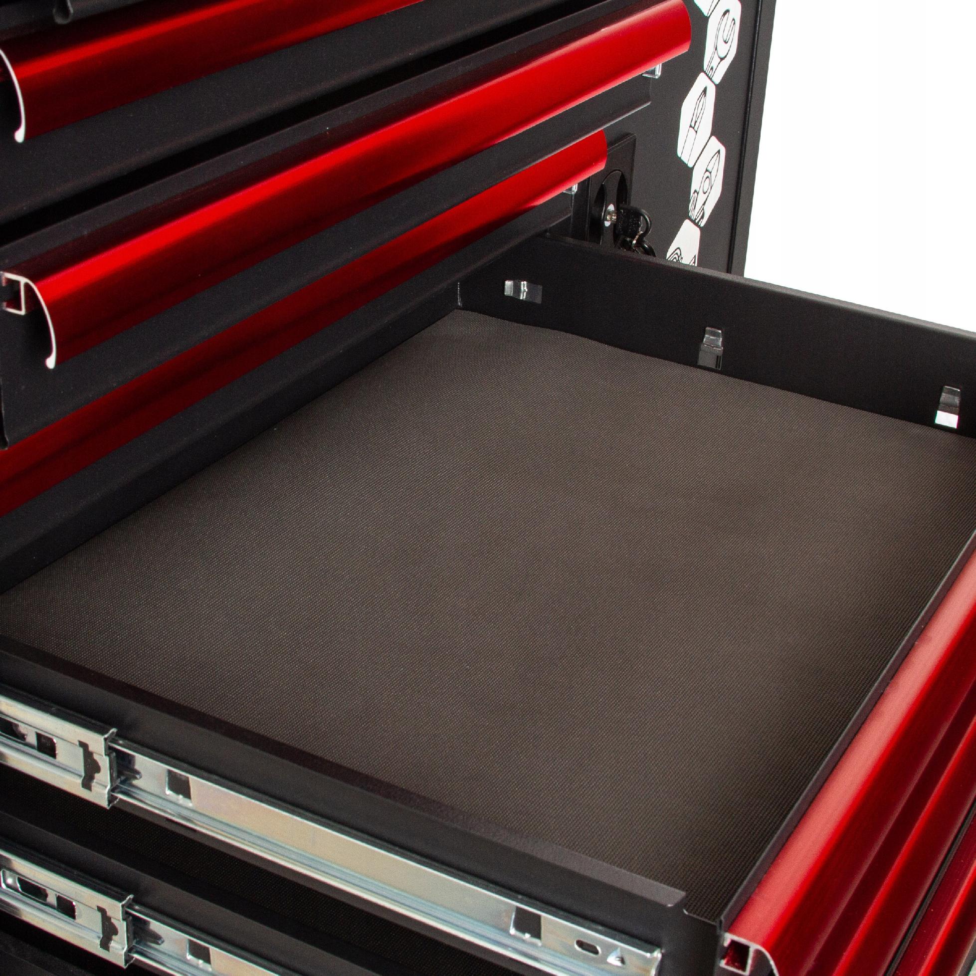 Skrzynka jest bardzo dobrze zabezpieczona do transportu posiada także folię zabezpieczającą blat przed porysowaniem. Skrzynka jest gotowa do użytku od razu po wypakowaniu z pudełka. ✅Szafy warsztatowe posiadają 7 szuflad + duża półka o zwiększonej pojemności, co daje nam swobodę przechowywania narzędzi i korzystania z niej. ❌Szafy warsztatowe INNYCH marek również posiadają 7 szuflad, za to dużo mniejszych, co powoduje trudności w wyjmowaniu narzędzi. Niższa szuflada sprawia problemy przy doposażeniu szafki. ✅Sama konstrukcja i szuflady są wykonane z blachy o grubości 0,7 mm, co sprawia, że szafa jest stabilna i wytrzymała. ❌Konstrukcja INNYCH szaf wykonana jest z blachy 0,5 mm, przez co jest podatna na uszkodzenia i odkształcenia, a szuflady mają mniejszy udźwig i wyginają się. solidne kółka jezdne w tym 2 skrętne, ułatwiające manewrowanie szafką. Wózek warsztatowy jest wyposażony w mocny hamulec, za pomocą którego możemy zatrzymać szafkę w ustalonej pozycji. Pojemny schowek, składający się z dwóch części, po otworzeniu szuflady mamy dodatkowo możliwość ustawienia wysokości środkowej szuflady. Wewnątrz zostały wyposażone w gumowe podkładki dzięki czemu nie porysujemy blatu oraz nie podnosimy zbędnego hałasu. Schowek zabezpieczony zamkiem na klucz Szafka posiada ergonomiczny uchwyt zintegrowany z boczną ścianką, solidne przymocowany, ułatwiający transport.✅Profesjonalna szafa warsztatowa, wózek warsztatowy , 7 szuflad+ 1 pułka, stalowy blat❗❗❗