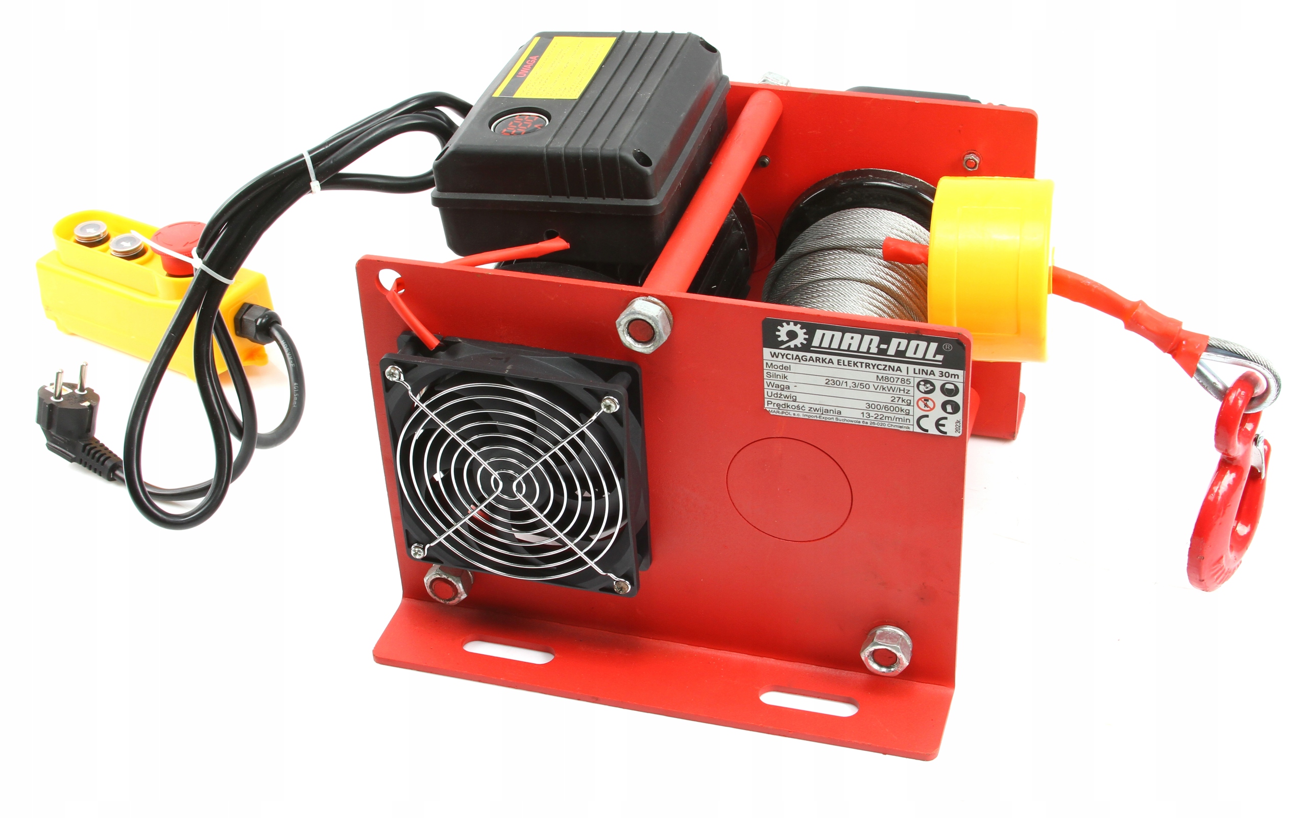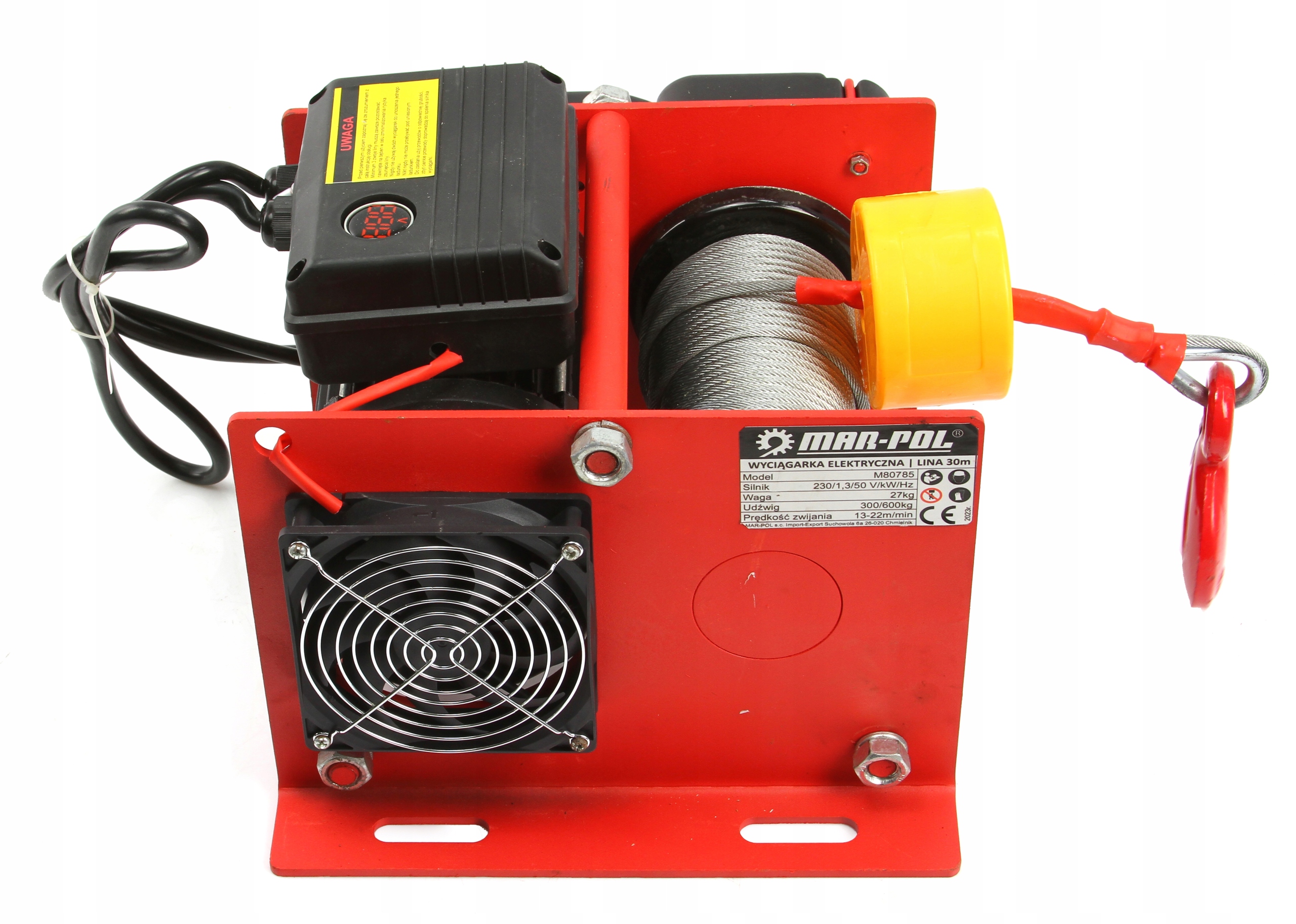 Wyciągarka elektryczna linowa o udźwigu do 600kg. Doskonale nadaje się do warsztatów i miejsc budowy. Wciągarka przystosowana jest do bezpiecznego podnoszenia i opuszczania ciężkich przedmiotów takich jak silniki, materiały budowlane, ciężkie narzędzia. Idealnie sprawdza się również w roli warsztatowej wciągarki samochodowej. Wciągarka linowa firmy Mar-pol jest narzędziem, w którym postarali się o najwyższą jakość komponentów. Model ten zapewnia bezpieczną pracę w każdym miejscu. Dzięki zwiększonej mocy i technologii nowoczesnego silnika indukcyjnego nie będziesz już miał problemów z zacinaniem się mechanizmu podczas operacji wciągania. ✅ DANE TECHNICZNE: