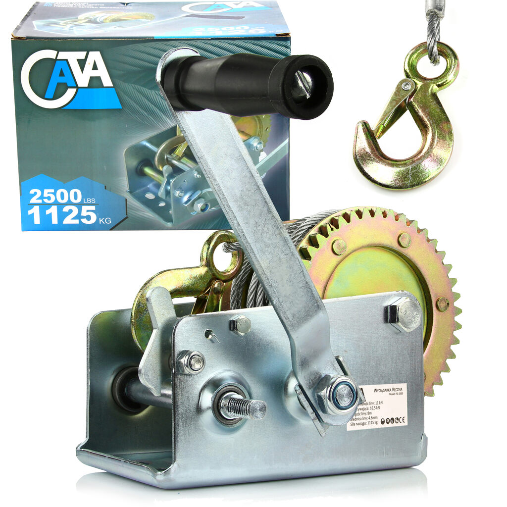 Wciągarka ręczna wykonana z wysokiej jakości materiałów zapewniających jej odpowiednią trwałość i niezawodność. Wyposażona jest w mocny odlewany hak ze sprężyną zwrotną. Sprzęt zapewnia bezpieczne i bezproblemowe wciąganie i opuszczanie przedmiotów. WYPOSAŻONA W 2 PRZEŁOŻENIA!!! SZYBKO / WOLNO 2 KIERUNKI ZWIJANIA - BEZPIECZNE ODWIJANIE I ZWIJANIE! ➜ Wciąganie / opuszczanie łódek, ➜ Wciąganie motocykli /quadów / innych pojazdów, ➜ Niezastąpiona pomoc w warsztacie.》》》 WCIĄGARKA RĘCZNA KORBOWA LINOWA 5,5mm 10m 1125 kg Cata M80739 《《《