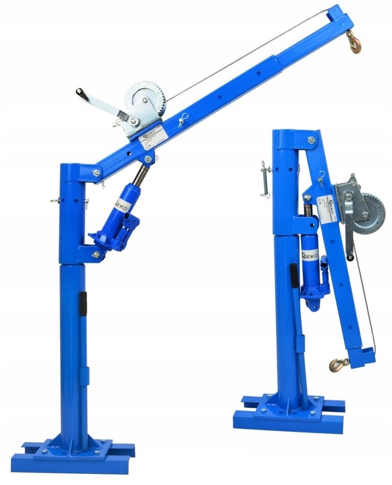 Podnośnik hydrauliczny HDS 450 kg (żuraw) renomowanej marki GEKO. Przeznaczony do użytku w profesjonalnych warsztatach samochodowych oraz serwisach motoryzacyjnych. Żuraw za pomocą płyty montażowej może zostać przymocowany na samochodzie lub na odpowiednio przygotowanym podłożu w warsztacie. Dźwig posiada wysuwane ramię (wysięgnik) z 4 stopniową blokadą. Udźwig żurawia w zależności od długości ramienia waha się w przedziale od 450 kg (ramie najmniej wysunięte) do 225 kg (maksymalnie wysunięte ramie). Ponadto podnośnik wyposażony został w wciągarkę linową o maksymalnym udźwigu 450kg.PODNOŚNIK HYDRAULICZNY HDS (ŻURAW) 450 KG
