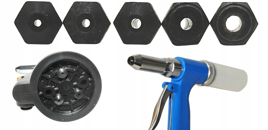 Obsługuje nity wykonane ze stali nierdzewnej, stali, aluminium, miedzi. Prezentowany przez nas produkt to solidne i profesjonalne urządzenie do pracy z różnymi rodzajami nitów. Dzięki różnym rodzajom szczęk nitownica może współpracować z nitami o wielkości : 2,4; 3,2; 4; 4,8; 6,4mm oraz nitami wykonanymi ze stali nierdzewnej, stali, miedzi oraz aluminium. Wyposażona w pojemnik na odpadki podczas nitowania. ✅ DANE TECHNICZNE: W zestawie :