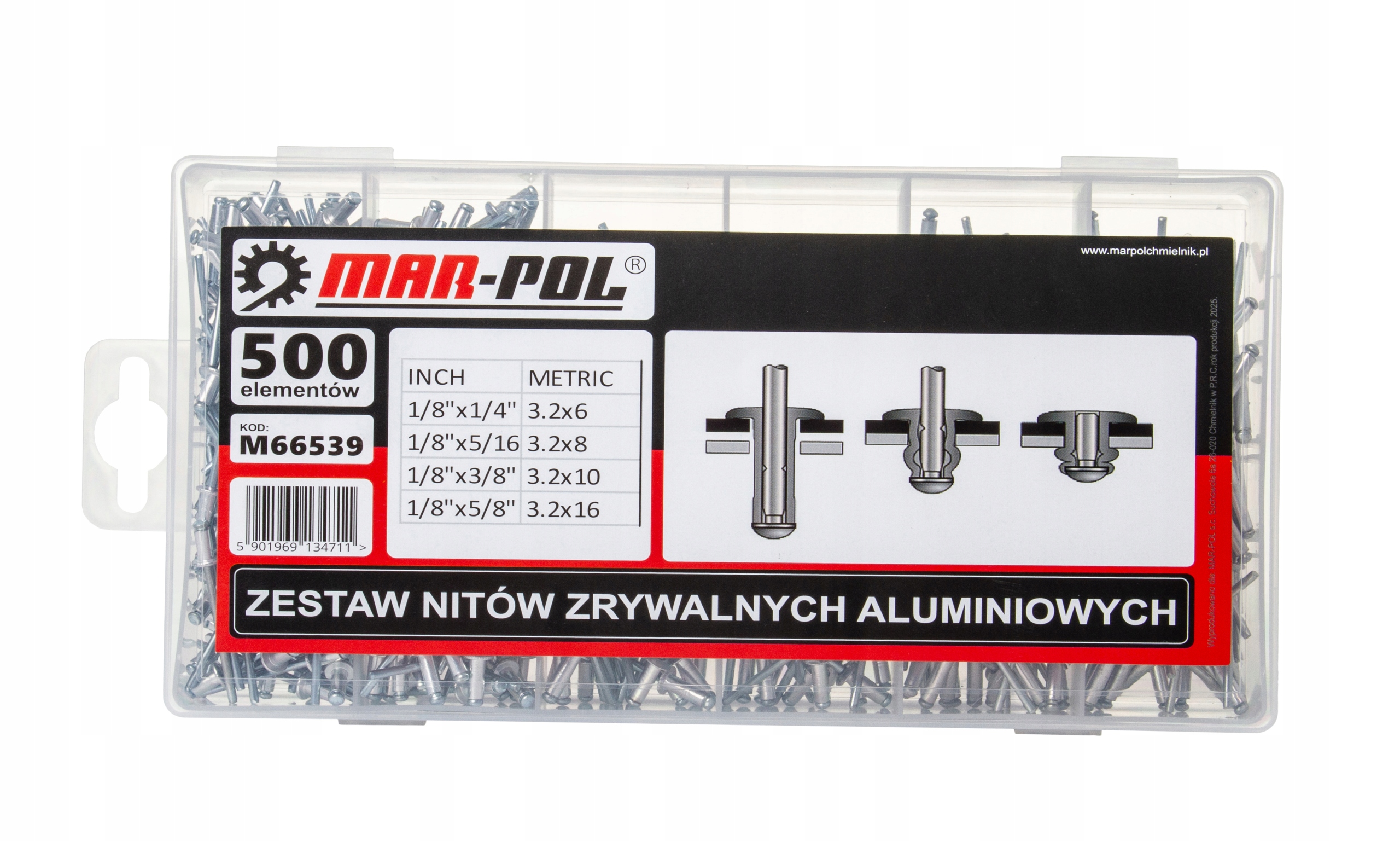 NITY ALUMINIOWE ZRYWALNE ZESTAW NITÓW do NITOWNICA RĘCZNA 3.2 x 500szt