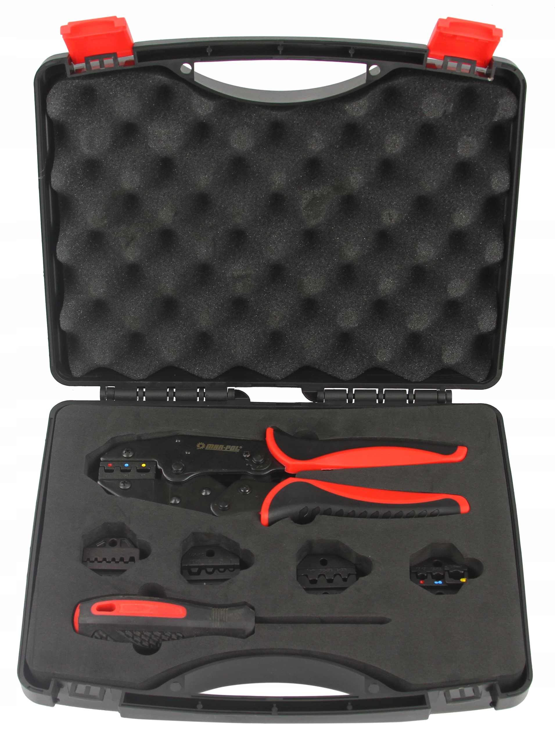 SZCZYPCE ZACISKARKA KONEKTORÓW 5 MATRYC ŚCIĄGACZ IZOLACJI KABLI PRZEWODÓW