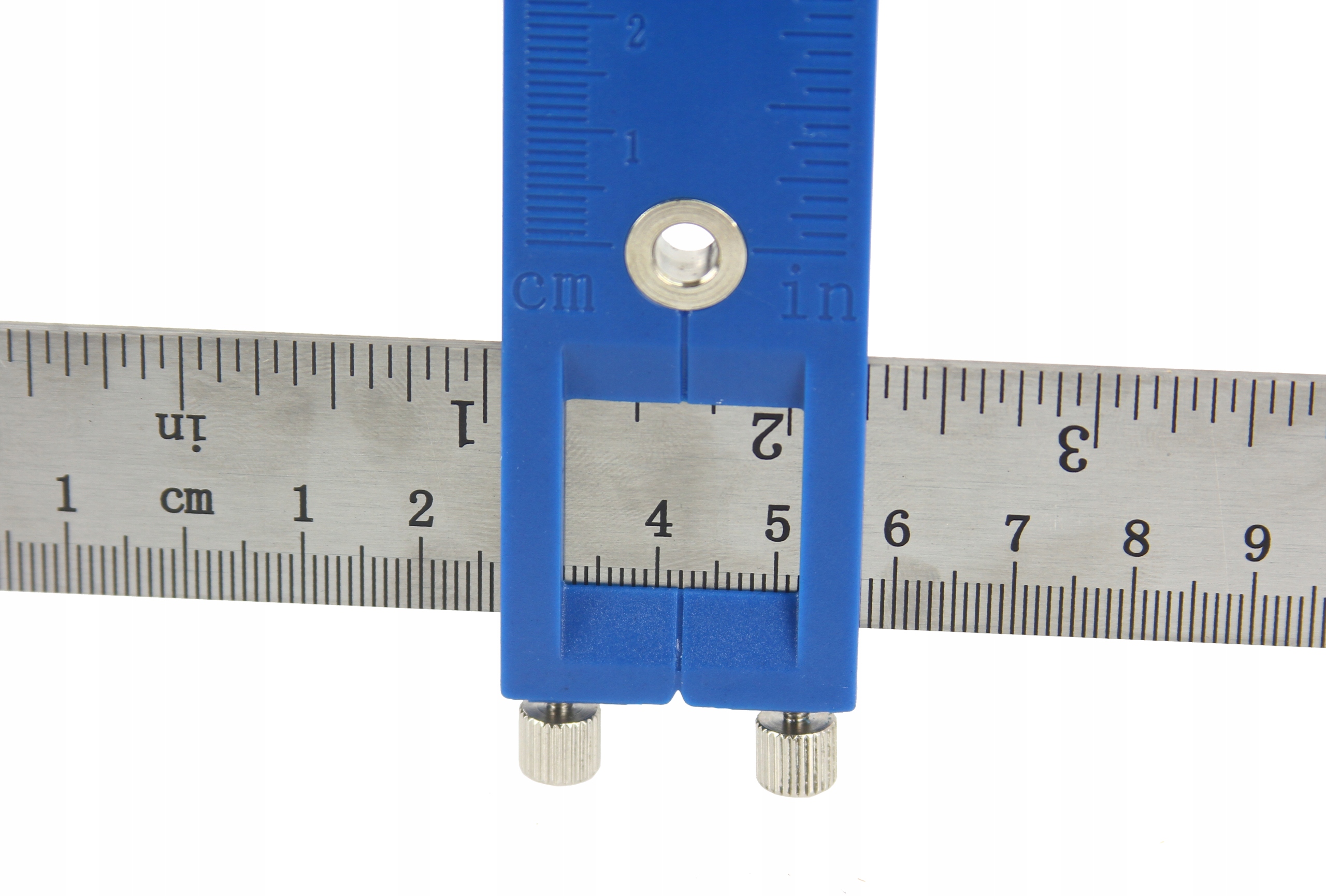 Szablon, prowadnica do wyznaczania punktów wiercenia. Główna szyna z naniesioną miarą umożliwia regulację znaczenia do 25 cm w głąb frontu mebla. W górnej części zamontowana jest ruchoma, stalowa listwa na której umieszczono trzy przesuwane znaczniki służące do dokładanego wyznaczenia punktów wiercenia. Po ustawieniu odległości należy dokręcić śrubę zaciskową powodując utrwaleniu ustawienia. Dzięki linijce będziesz mógł bez problemu przenosić wymiary i otwory na kolejne materiały, bez potrzeby wymiarowania za każdym razem. Skala podana w centymetrach oraz calach pozwoli Ci na precyzyjne wymiarowanie i ustawienie otwornic. Otwornice posiadają okienko oraz wskaźnik środka na miarce co jeszcze bardziej ułatwia pozycjonowanie. Zestaw zapakowany w poręczne etui.SZABLON WZORNIK KSZTAŁTU