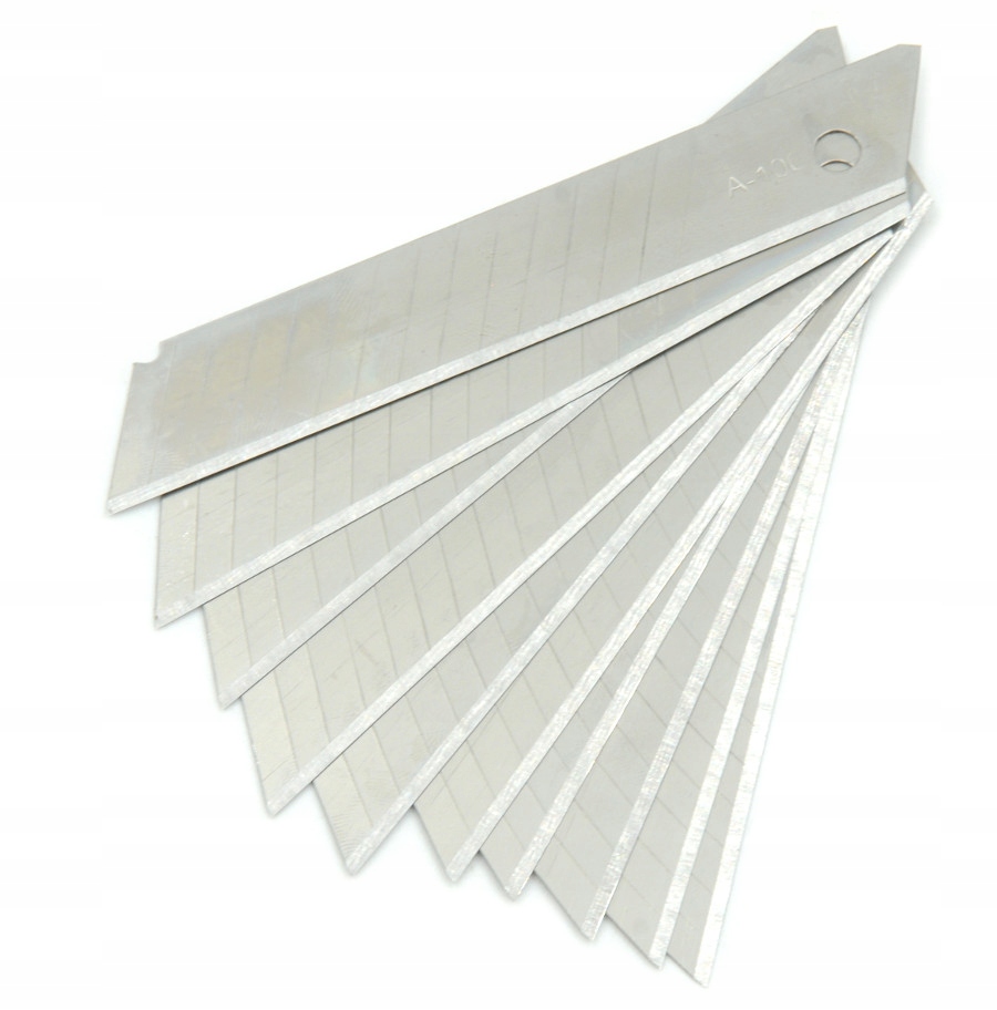 Ostrza łamane do nożyków zapewniają stałą i wysoką jakość krawędzi tnącej oraz dużą sztywność całego ostrza, mimo jego segmentowej budowy. Dzięki niej po stępieniu ostrza można odłamać jeden segment mając kolejny, ostry fragment.WYMIENNE OSTRZA DO NOŻA ŁAMANE 18mm 10szt. FT0011