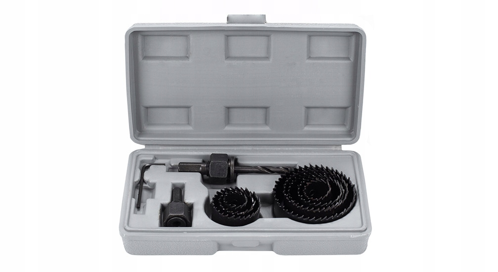 Zestaw przeznaczony do wycinania otworów w drewnie, płytach G/K i kartonowych. Zestaw przydatny przy pracach wykończeniowych, hydraulicznych, elektrycznych. Otwornice stosowane są do wykrawania otworów o dużej średnicy poprzez nacinanie jedynie po obwodzie wykonywanego otworu. Kształt wiertła ma postać cylindra, zakończonego ostrymi zębami skrawającymi. Otwornica dodatkowo posiada adapter z wiertłem centrującym. Otwornice wykonane są z hartowanej stali narzędziowej. Posiada przedłużkę, która umożliwia mocowanie w uchwycie standardowej głowicy zaciskowej w każdej wiertarce. SKŁAD ZESTAWU: