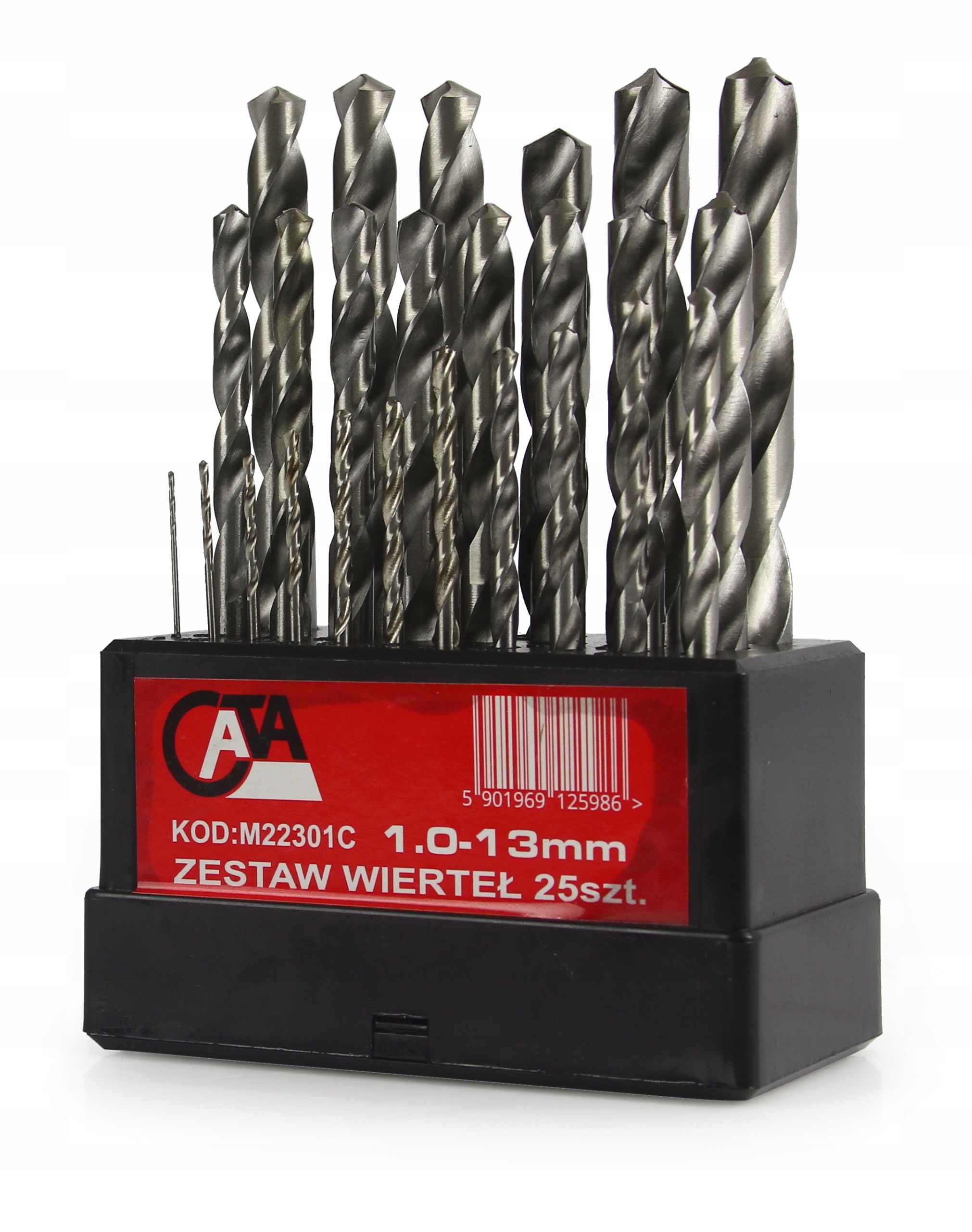 Wiertła firmy CATA charakteryzują się wysoką elastycznością, uzyskaną w wyniku odpowiedniej obróbki cieplnej. Co znacząco zmniejsza ryzyko na złamanie wiertła. Rowek wiórowy pokryty jest warstwą tlenku, która zapewnia szybsze odprowadzenie wiórów. Wygodne i praktyczne pudełko z plastikowym domknięciemWIERTŁA DO METALU ZESTAW XXL 1 - 13 MM 25 SZTUK WALCOWE