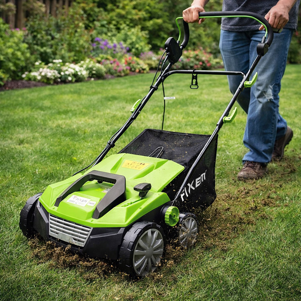 Aerator marki Fixem o szerokości 380mm to niezastąpione narzędzie do pielęgnacji trawników. Jego głównym zadaniem jest napowietrzanie gleby, co poprawia dostęp tlenu do korzeni roślin oraz wspomaga wchłanianie wody i składników odżywczych. Regularne stosowanie aeratora pomaga wzmocnić trawnik, zapobiega tworzeniu się zbitej warstwy darni i wspiera jego zdrowy, zielony wygląd. Dzięki kompaktowej szerokości 380 mm urządzenie jest wygodne w obsłudze i idealne zarówno do mniejszych, jak i średnich powierzchni ogrodowych. ✅ PARAMETRY: AERACJA polega na napowietrzaniu gleby poprzez głębokie nakłuwanie darni, co poprawia dopływ tlenu, wody i składników odżywczych do korzeni trawy. Znacznie przyspiesza regenerację trawnika po zimie oraz zwiększa odporność na suszę. Częstotliwość: Przynajmniej dwa razy w roku – wczesną wiosną oraz na przełomie lata i jesieni. Można powtarzać częściej, zwłaszcza po intensywnym użytkowaniu trawnika w sezonie letnim WERTYKULACJA to proces pionowego nacinania darni, który usuwa mech, filc i obumarłe resztki roślinne. Zabieg ten poprawia przepuszczalność gleby i pobudza trawnik do wzrostu. Częstotliwość: Zalecana dwa razy w roku - wiosną oraz jesienią. Kosz o pojemności 45 litrów to praktyczne i funkcjonalne rozwiązanie, które ułatwia utrzymanie porządku podczas pracy w ogrodzie. Dzięki odpowiedniej pojemności 45 l pozwala na dłuższą pracę bez konieczności częstego opróżniania, co zwiększa komfort i efektywność użytkowania. Solidna konstrukcja zapewnia trwałość, a łatwy montaż i demontaż sprawiają, że opróżnianie kosza jest szybkie i wygodne.
