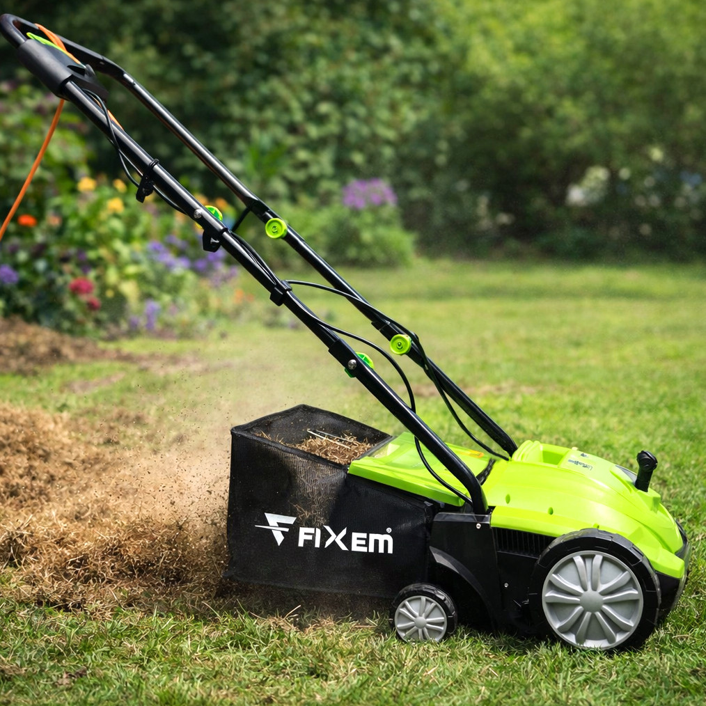 Aerator marki Fixem o szerokości 320mm to niezastąpione narzędzie do pielęgnacji trawników. Jego głównym zadaniem jest napowietrzanie gleby, co poprawia dostęp tlenu do korzeni roślin oraz wspomaga wchłanianie wody i składników odżywczych. Regularne stosowanie aeratora pomaga wzmocnić trawnik, zapobiega tworzeniu się zbitej warstwy darni i wspiera jego zdrowy, zielony wygląd. Dzięki kompaktowej szerokości 320 mm urządzenie jest wygodne w obsłudze i idealne zarówno do mniejszych, jak i średnich powierzchni ogrodowych. ✅ PARAMETRY: AERACJA polega na napowietrzaniu gleby poprzez głębokie nakłuwanie darni, co poprawia dopływ tlenu, wody i składników odżywczych do korzeni trawy. Znacznie przyspiesza regenerację trawnika po zimie oraz zwiększa odporność na suszę. Częstotliwość: Przynajmniej dwa razy w roku – wczesną wiosną oraz na przełomie lata i jesieni. Można powtarzać częściej, zwłaszcza po intensywnym użytkowaniu trawnika w sezonie letnim WERTYKULACJA to proces pionowego nacinania darni, który usuwa mech, filc i obumarłe resztki roślinne. Zabieg ten poprawia przepuszczalność gleby i pobudza trawnik do wzrostu. Częstotliwość: Zalecana dwa razy w roku - wiosną oraz jesienią. Kosz o pojemności 30 litrów to praktyczne i funkcjonalne rozwiązanie, które ułatwia utrzymanie porządku podczas pracy w ogrodzie. Dzięki odpowiedniej pojemności 30 l pozwala na dłuższą pracę bez konieczności częstego opróżniania, co zwiększa komfort i efektywność użytkowania. Solidna konstrukcja zapewnia trwałość, a łatwy montaż i demontaż sprawiają, że opróżnianie kosza jest szybkie i wygodne.