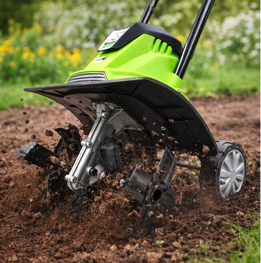Glebogryzarka marki FIXEM dzięki kompaktowej konstrukcji i łatwej obsłudze pozwala szybko przygotować teren pod siew, oszczędzając czas oraz wysiłek. Glebogryzarka jest maszyną przydatną podczas uprawy gleby w ogrodzie i na polu. Sprawdza się podczas spulchniania i wyrównania dużych powierzchni gleby. Doskonale sprawdzi się podczas przygotowywania gleby pod uprawę różnych roślin, prac sezonowych, ułatwi też zakładanie trawnika. ✅ Specyfikacja techniczna: Ergonomiczne rączki ułatwiają sterowanie glebogryzarką, rozstaw rękojeści jest zoptymalizowany pod kątem zapewnienia komfortu podczas pracy. Dodatkowo rękojeść posiada zaczep do zawieszenia przewodu zasilającego. Elektryczny system rozruchu pozwala szybko uruchomić glebogryzarkę bez wysiłku fizycznego. Rozwiązanie jest przyjazne dla użytkownika, zwiększając komfort użytkowania. Glebogryzarka to prawdziwy sprzymierzeniec każdego ogrodnika. Dzięki szerokości roboczej wynoszącej 36 cm szybko i efektywnie spulchnisz nawet większe powierzchnie, oszczędzając czas i wysiłek. Co więcej, głębokość pracy sięgająca aż 22 cm sprawia, że gleba zostaje dokładnie napowietrzona i przygotowana do siewu lub sadzenia roślin. Glebogryzarka elektryczna wyposażona jest w wytrzymałe kółka transportowe , które ułatwiają przemieszczanie urządzenia. Kółka minimalizują wysiłek przy przemieszczaniu, nawet na nierównym terenie. Siła tkwi w ostrzach Cztery solidne, czteroramienne noże zapewniają równomierne i skuteczne rozdrabnianie gleby – nawet tej zbitej lub pełnej resztek roślinnych. Ostre i trwałe elementy tnące gwarantują długą, bezproblemową eksploatację urządzenia. Solidna obudowa gwarantuje wysoką odporność na uszkodzenia mechaniczne oraz długą żywotność urządzenia. Dzięki niej glebogryzarka staje się niezawodną inwestycją na wiele lat.
