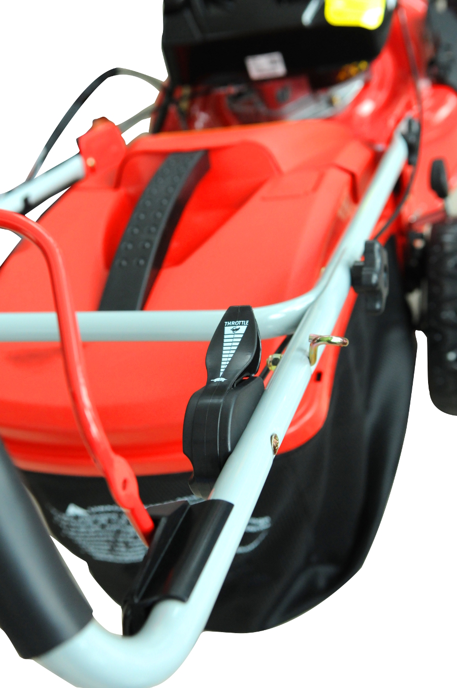 Kosiarka została wyposażona w trwały, niezawodny silnik firmy Briggs&Stratton. Silnik Briggs&Stratton to bardzo wysoka jakość wykonania silnika zapewniająca dużą trwałość i niezawodność. Wielu fachowców klasyfikuje te silniki bardzo wysoko doceniając ich jakość i kulturę pracy. Silnik zbudowany z materiałów lepiej przystosowanych do użytkowania w polskich warunkach klimatycznych. Model GRB 530S B&S750 jest wykonany z najlepszych podzespołów, korpus kosiarki typu PRO jest gruby ok 1,8 mm i dodatkowo wywinięty do środka co ma dwie zalety: Pierwsza to usztywnienie całego decka a druga równie istotna to lepsze zbieranie trawy do kosza. Dodatkowo korpus i wszystkie elementy metalowe są lakierowane dwuwarstwowo z podkładem. Gruba warstwa farby chroni przed rdzewieniem oraz przez długie lata nie wytraca koloru. Koła w tym modelu są łożyskowane. Duże koła w rozmiarze przód 20 cm, tył 28 cm znacząco ułatwiają koszenie na nierównym terenie. Podczas koszenia nie zawiesimy się na dziurach i nierównościach. Kosiarka posiada napęd renomowanej firmy General Transmissions. Kosz kosiarki o pojemności 70 L jest dwuelementowy, góra została wykonana z tworzywa sztucznego a dolna część w mocnego nylonowego splotu. Regulowana wysokość uchwytu prowadzącego, centralna 6-pozycyjna regulacja wysokości koszenia i ergonomiczne uchwyty ułatwiają pracę i zwiększają komfort użytkownika.