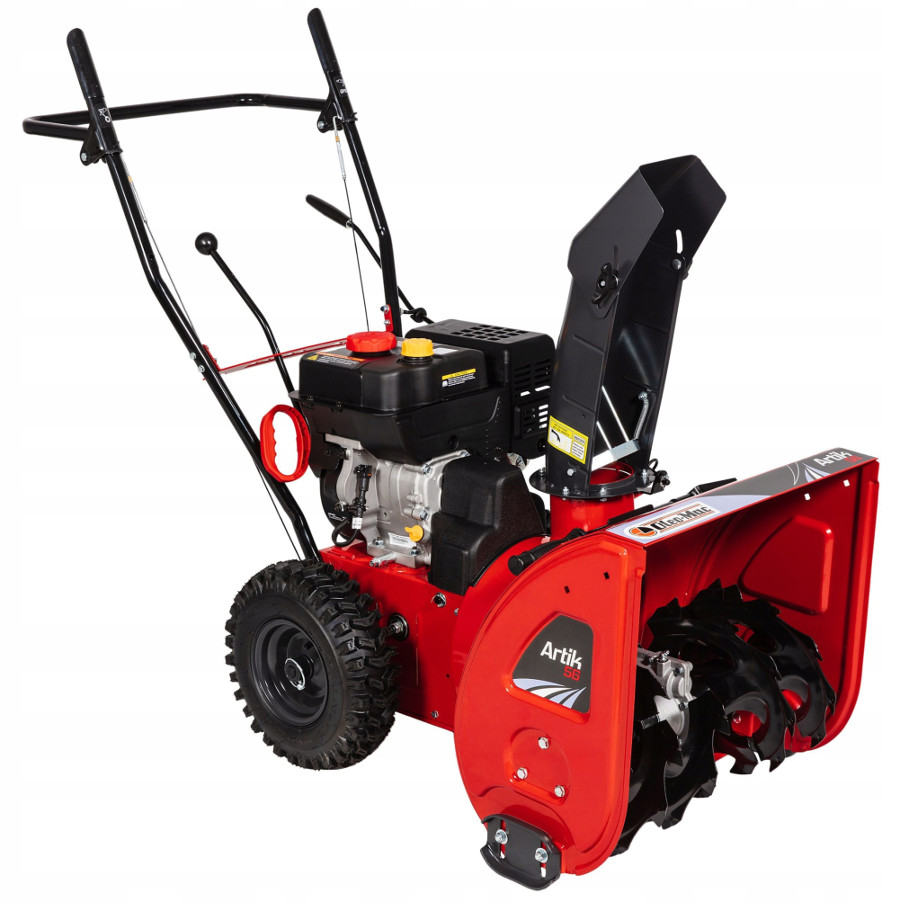Odśnieżarki ARTIK to idealne rozwiązanie dla osób, które chcą ze spokojem i pewnością stawić czoło zimie. Wyposażone są w zimowe, górnozaworowe silniki o wysokiej wydajności z elektrycznym lub manualnym rozruchem, zaprojektowane z myślą o pracy w niskich temperaturach. Dwustopniowy wirnik z ząbkowanym frezem zapewnia optymalną skuteczność, również podczas pracy w ubitym lub zlodowaciałym śniegu. Doskonała przyczepność w każdym terenie uzyskana jest dzięki specjalnemu, klockowemu bieżnikowi opon. Silniki o doskonałych osiągach należące do serii WINTER, z technologią OHV, przeznaczone do eksploatacji w niskich temperaturach. Turbina dwustopniowa z frezem zębatym gwarantuje optymalną skuteczność również w przypadku ciężkiego lub zamarzniętego śniegu. Łatwe w obsłudze elementy regulujące rozmieszczone na pulpicie. Kanał wyrzutowy z możliwością regulacji kierunku o 190° w poziomie i 70° w pionie, regulowanym bezpośrednio ze stanowiska obsługi.