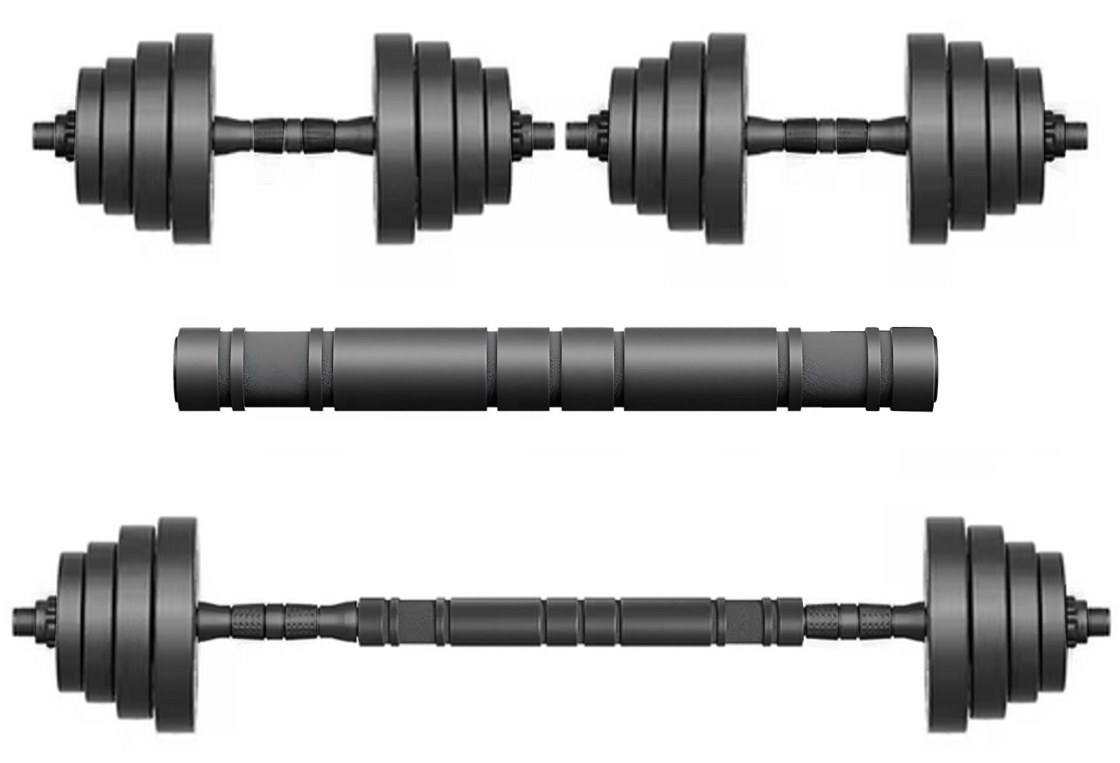 Hantle wykonane z dbałością o detale. Obciążenia pokryte tworzywem sztucznym, które chroni podłogę przed uszkodzeniami podczas odkładania ✅ Zestaw zawiera: Zalety produktu: Zestaw posiada wygodny i miękki łącznik , dzięki któremu trening będzie bezpieczny, ale i bardzo komfortowy. Opierając sztangę bez pokrycia na naszych plecach podczas ćwiczeń może dojść do sytuacji stłuczenia oraz nadwyrężenia mięśni. Regulacja obciążeń - mogą Państwo dostosować ciężar założony na hantle i sztangę poprzez zdjęcie lub dołożenie obciążeń. Przekształcenie hantli w sztangę - dzięki zastosowanemu w zestawie łącznikowi mogą Państwo przekształcić zestaw hantli w sztangę prostą. Dostosowanie długości sztangi - łącznik dołączony w zestawie pozwala na dwie konfiguracje obciążenia na sztandze. Konfigurację z chwytem szerzej rozstawionym oraz konfigurację z chwytem węższym. Dzięki takiemu zabiegowi mogą Państwo wykonywać większe kombinacje ćwiczeń przy użyciu tylko jednego sprzętu.
