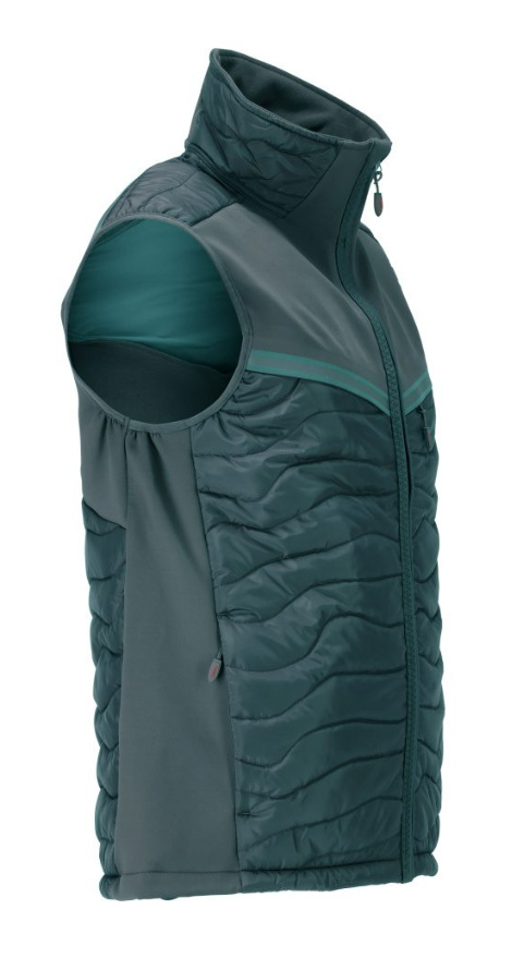 Kamizelka robocza z wstawkami z elastycznego materiału po bokach i na klatce piersiowej które zwiększają swobodę ruchu. CLIMASCOT® Lightweight Insulation gwarantuje użytkownikowi ciepło, a do tego powierzchnia jest pokryta środkiem, który zapewnia odporność na wodę i zabrudzenia. Produkt jest zgodny z dyrektywą REACH oraz normą Oeko-Tex® Standard 100.
