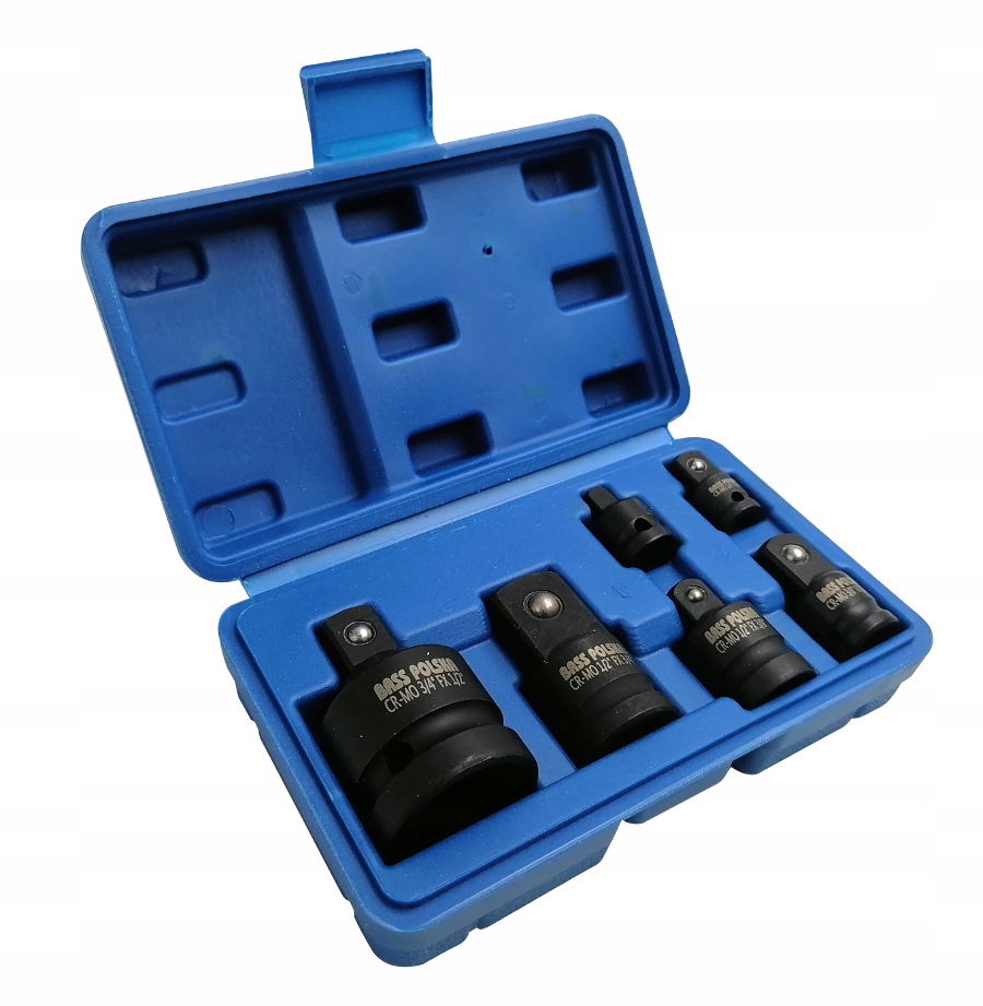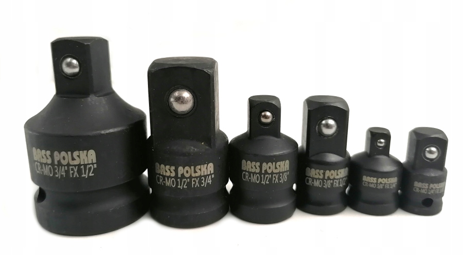 Komplet adapterów / redukcji udarowych(6 sztuk). Znakomicie się nadają do prac pod obciążeniem zarówno w domowym warsztacie jak i w profesjonalnym zakładzie. Posiadają miejsce na kołek i pierścień zabezpieczający. Wykonane z wysokiej jakości stali Cro-Mo Cromo-MOLIBDEN ✅ ZESTAW ZAWIERA:
