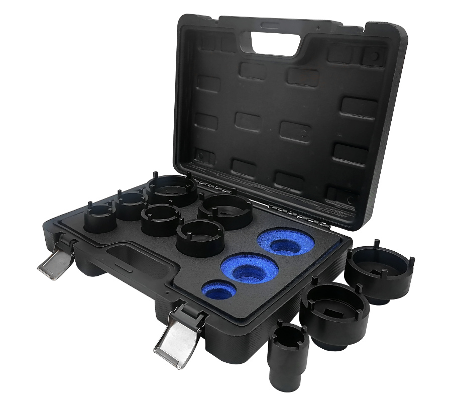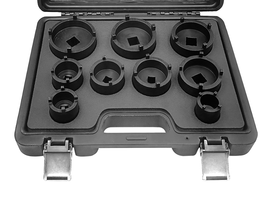 Zestaw nasadek przeznaczonych do odkręcania i dokręcania nasadek rowkowych podczas de/montażu łożysk i kół zębatych na wałach, tulejach zaciskowych i tulejach ciągnących w samochodach ciężarowych, maszynach budowlanych itp. ✅ Zestaw zawiera: Parametry: