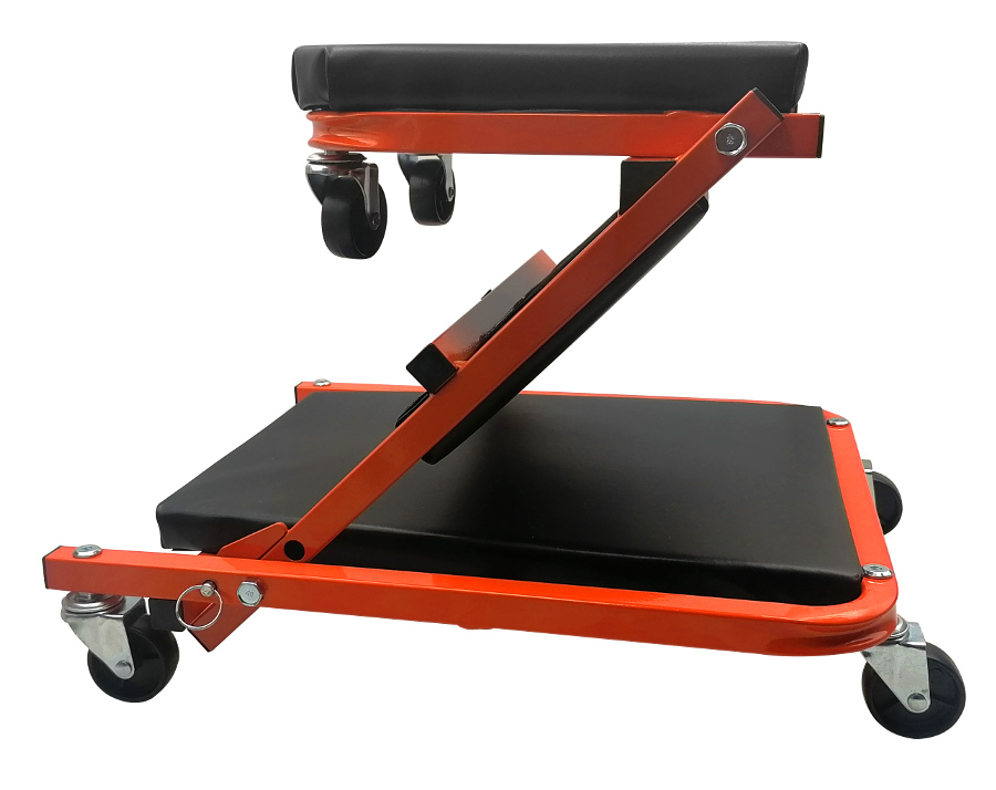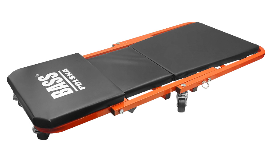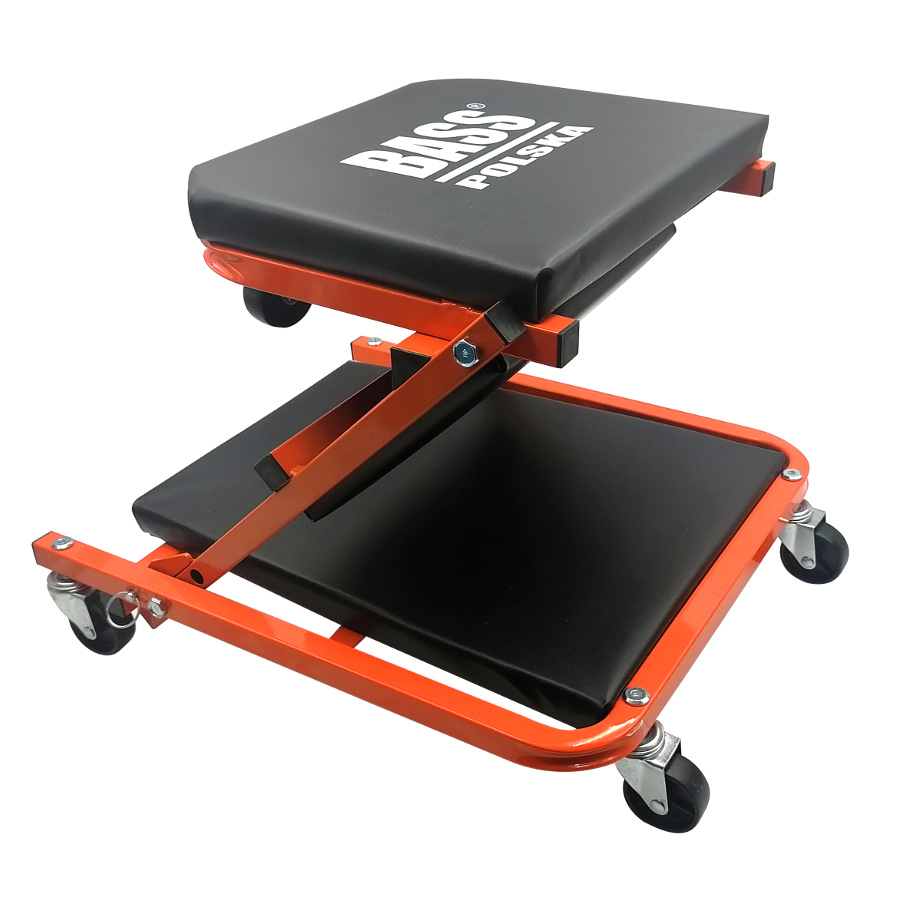 Funkcjonalna leżanka robocza 2 w 1 z wygodnym miękkim siedziskiem zapewnia pełen komfort w pracy. Umożliwia wygodną pracę pod podwoziem samochodu lub jakiegokolwiek innego pojazdu. Obita jest skóropodobnym materiałem odpornym na działanie smarów i olejów. Można ją zmienić w wygodne siedzisko. Wyposażona w kółka jezdne. Taboret posiada specjalną blokadę przed rozłożeniem się. Masywne wzmacniane profile sprawiają, że leżanki są wytrzymalsze, oraz praktyczniejsze od modeli dostępnych na rynku.