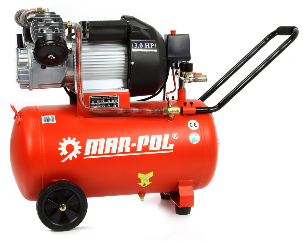 》》》 KOMPRESOR OLEJOWY SPRĘŻARKA ZBIORNIK 50L 8 BAR 3HP 2 TŁOKI V2 MAR-POL M88410 《《《