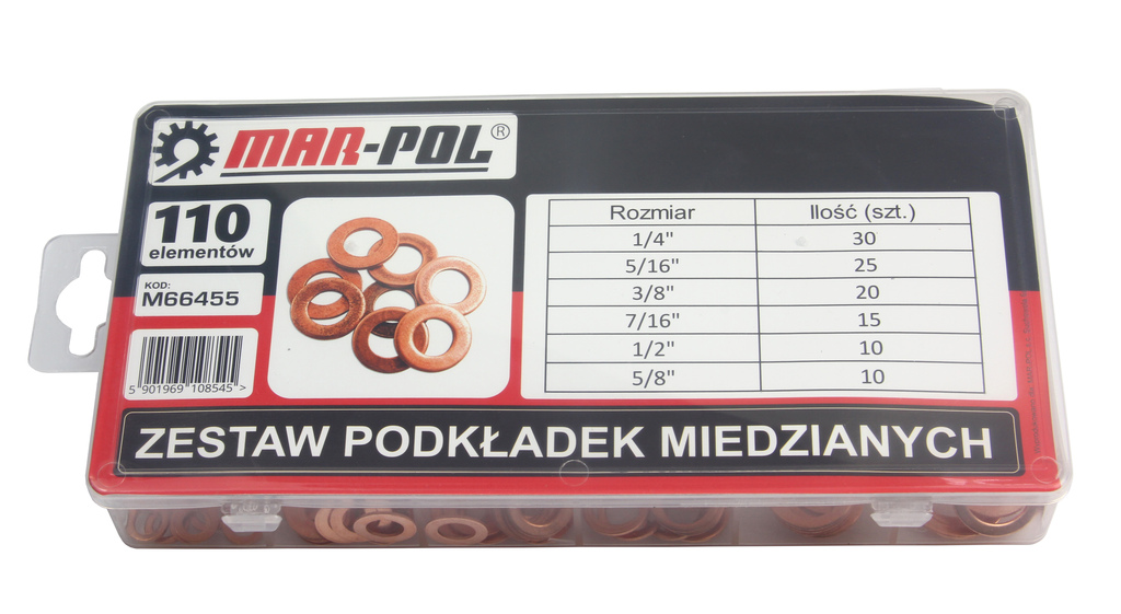 Zestaw podkładek miedzianych MAR-POL to praktyczny komplet 110 sztuk uszczelek o różnych średnicach, idealnych do zastosowania w motoryzacji, hydraulice, instalacjach gazowych i wodnych oraz w serwisach mechanicznych. Miedź to materiał odporny na wysoką temperaturę, korozję i ciśnienie – dlatego sprawdza się jako niezawodna uszczelka przy połączeniach gwintowanych, olejowych czy paliwowych.》》》 PODKŁADKI MIEDZIANE ZESTAW PODKŁADEK MIEDZIANYCH 110szt M66455 《《《