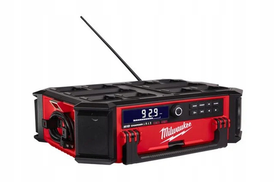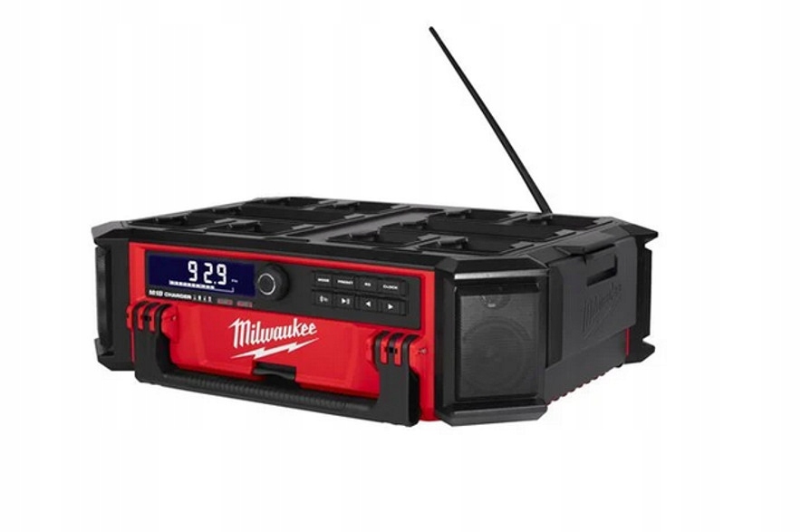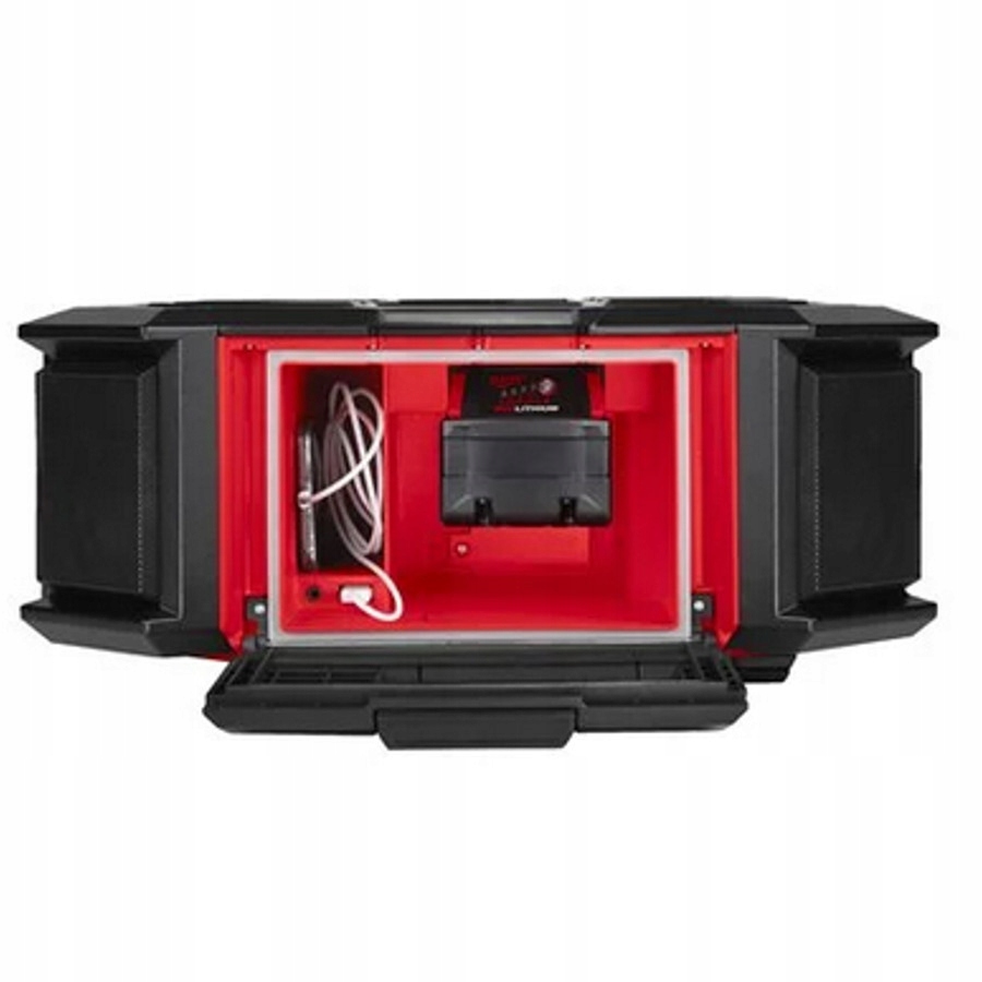 Wbudowana ładowarka dla szybkiego i wygodnego ładowania każdego akumulatora M18™ lub ladowania innego elektrycznego urządzenia za pomocą przewodu USB Odbiornik Bluetooth®: urządzenie odtwarza muzykę do około 30 m ze smartfonów, komputerów oraz tabletów Możliwość zasilania napięciem AC lub DC: zasilanie akumulatorami MILWAUKEE® M18™ albo przez zasilanie sieciowe 230 V Wysokiej jakości system audio-tuner DAB+/AM/FM z cyfrowym procesorem zapewnia doskonałą jakość odbioru i sygnał bez zakłóceń DAB+ zapewnia najlepszą jakość dźwięku oraz pozwala na odczytanie z cyfrowego wyświetlacza dodatkowych informacji takich jak: tytuł utworu, jego wykonawca i dokładny czas Wodoszczelny schowek do bezpiecznego przechowywania i ładowania urządzeń chroni je przed zmieniającymi się warunkami atmosferycznymi Urządzenie kompatybilne ze wszystkimi elementami modułowego systemu przechowywania PACKOUT™ od MILWAUKEE® Wysokiej jakości głośnik oraz 40 W wzmacniacz dźwięku zapewniają głośne, czyste brzmienie z głębokim basem WERSJA ZEROWA BEZ AKUMULATORA I ŁADOWARKI
