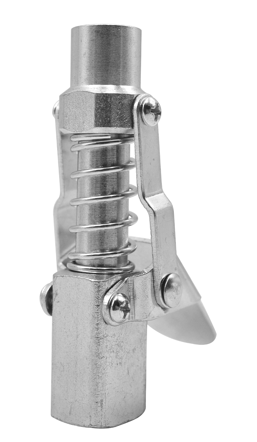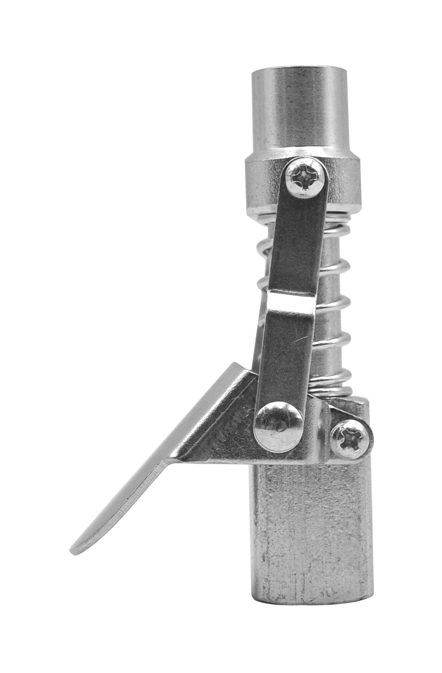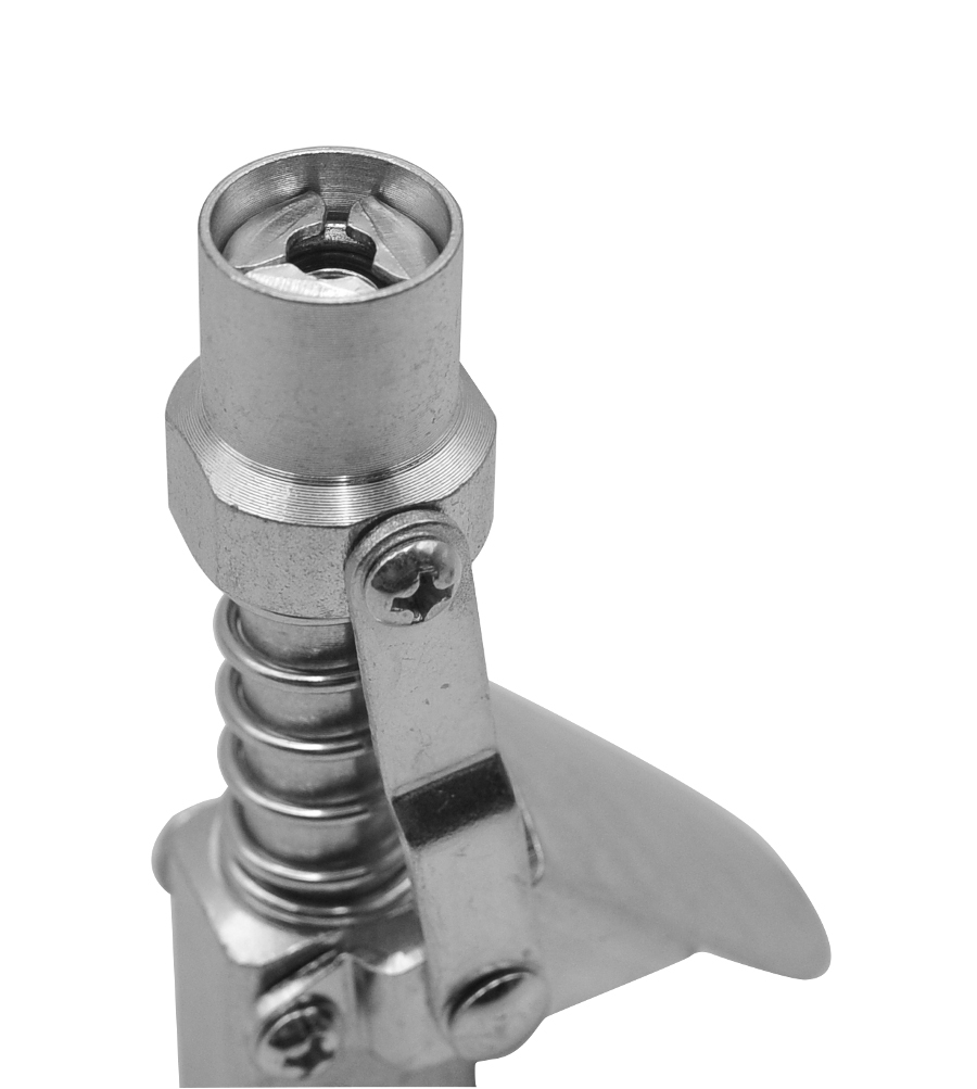 Końcówka smarownicy z dźwignią umożliwia szybkie i proste smarowanie części podczas prac konserwacyjnych. Dzięki niej mamy brak straty smaru nawet przy wysokim ciśnieniu - wystarczy podłączyć, puścić i rozpocząć pracę bez trzymania złącza. Pasuje do wszystkich powszechnie stosowanych smarownic: Pasuje do powszechnie stosowanych typów smarowniczek Posiada 3 hartowane szczęki ze stali narzędziowej Możliwość podłączania nawet do ciśnienia maks. 600 bar. Wysokojakościowa uszczelka zapewnia długi okres użytkowania, Zawór zwrotny gwarantuje pełną szczelność i brak strat smaru. Odłączanie za pomocą dźwigni, zapewnia brak problemów z zaciśniętym złączem nawet przy wysokim ciśnieniu. Brak potrzeby trzymania złącza podczas smarowania.