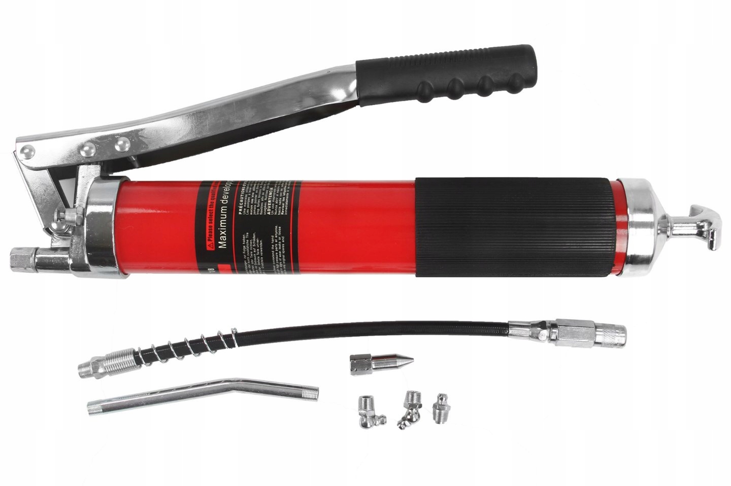 nr art:M78044 SMAROWNICA RĘCZNA TOWOTNICA 600 ml + ZESTAW WĘŻYKÓW ( GIĘTKI I SZTYWNY ) + ZESTAW KOŃCÓWEK( 4 POPULARNE KOŃCÓWKI ) Solidna smarownica ręczna wykonana z metalowych podzespołów zapewnia długą żywotność i efektywne smarowanie , wielu elementów dzięki, dwóm wężykom w zestawie oraz 4 końcówkom Optymalna pojemność: 600 ML Nasza smarownica jest wyposażona w specjalny przycisk służący do odpowietrzania