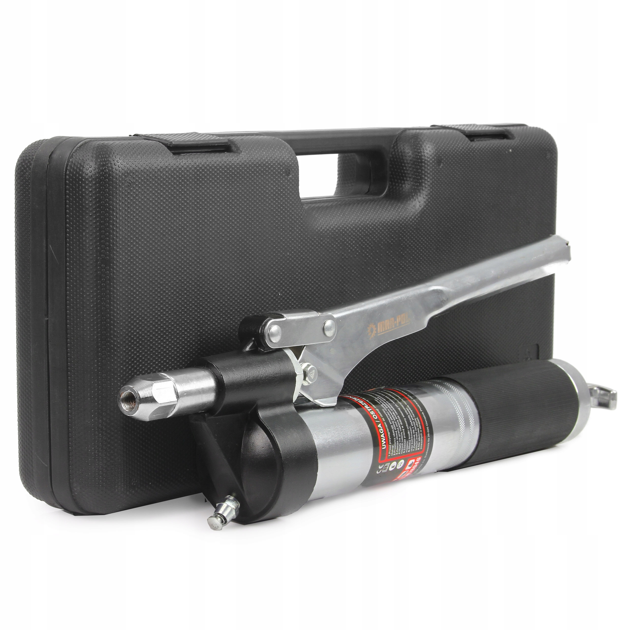 niezastąpiona w garażu jak i w serwisie. W zestawie znajduje się rurka i wężyk dzięki któremu możesz dostać się w trudno dostępne miejsca. -pojemność: 800 ml -długość rurki: 15 cm bez końcówki -długość wężyka: 30 cm bez końcówki -krótki skok dźwigni umożliwia działania w ciasnych przestrzeniach -końcówka 4-szczękowa metalowa (pasująca do większości kalamitek) -głowica metal -zapakowana w praktyczną walizkę -posiada odpowietrznik -w zestawie kalamitka, końcówka smarująca, dwa wężyki giętka i sztywna Optymalna pojemność: 800 MLSmarownica ręczna METALOWA w WALIZCE
