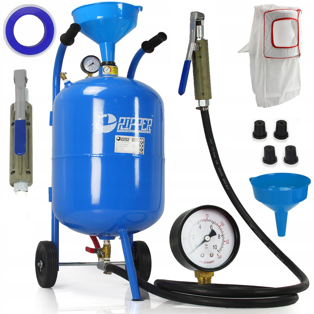 MOBILNA PIASKARKA SYFONOWA PISTOLET DO PIASKOWANIA 80L ZESTAW MASKA DYSZE