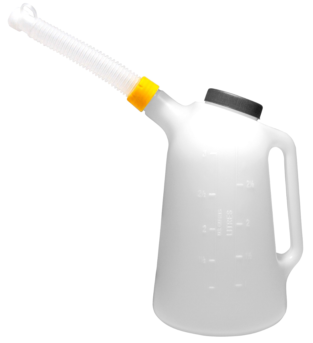 Praktyczny nalewak warsztatowy o pojemności 3 litrów. Wykonany z wytrzymałego tworzywa PE odpornego na płyny eksploatacyjne posiada praktyczny elastyczny lejek oraz przykręcaną pokrywę. Z boku nalewaka znajduje się podziałka ułatwiająca dozowanie płynów.