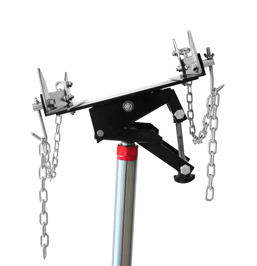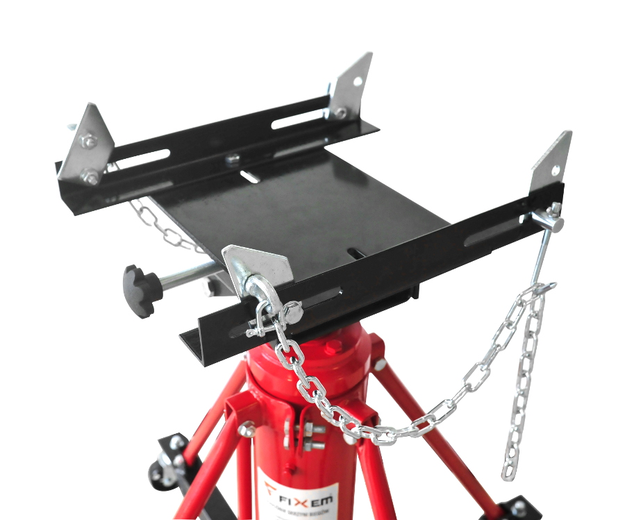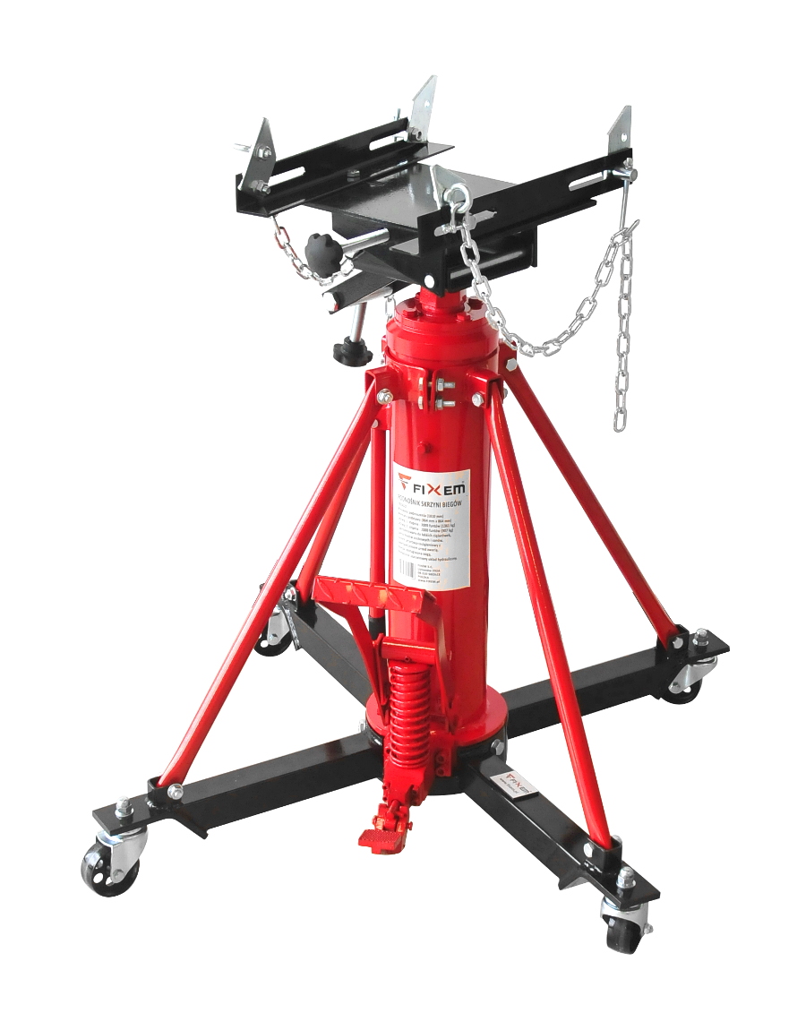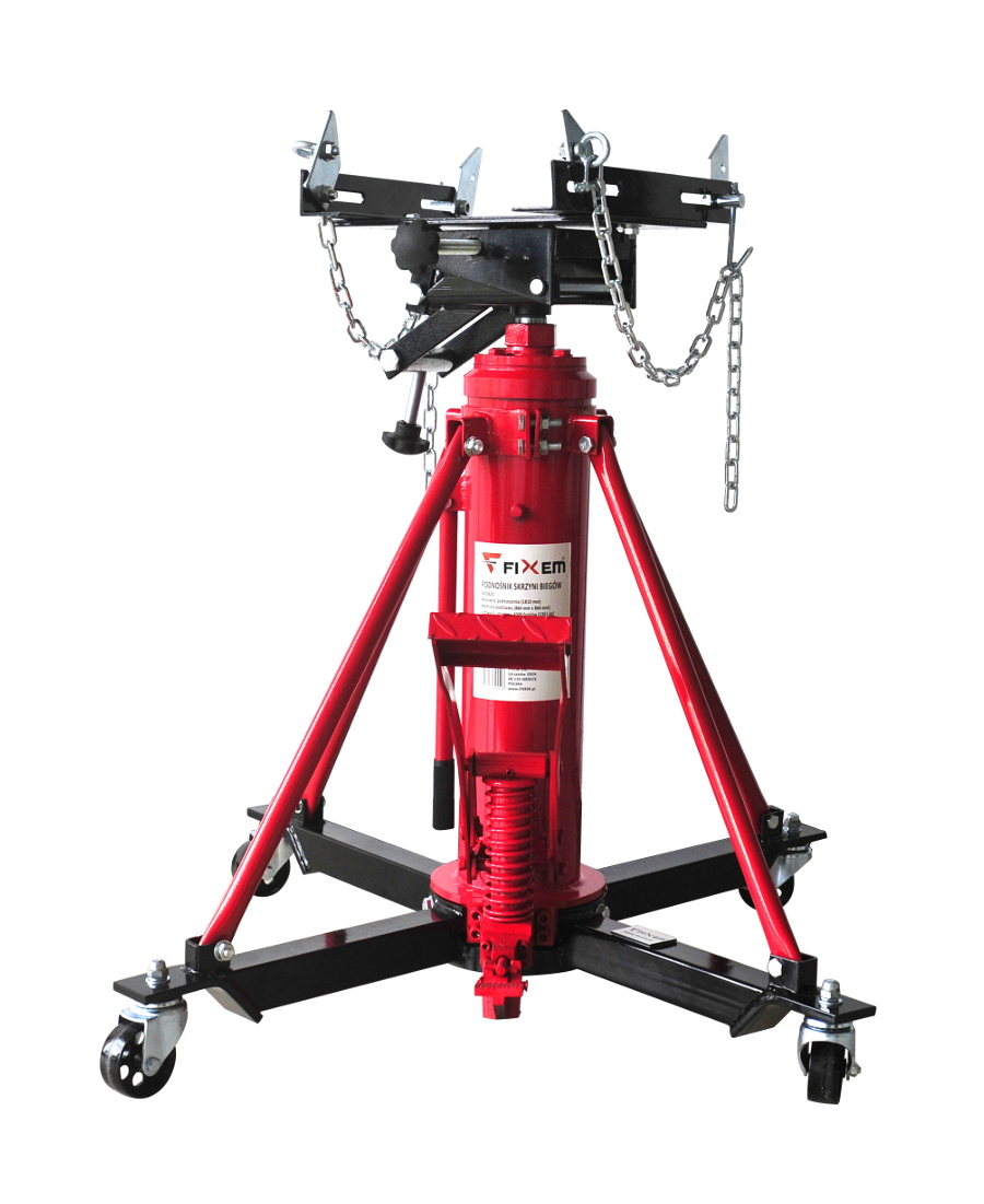 Solidny podnośnik warsztatowy zaprojektowany z myślą o wygodnym i bezpiecznym demontażu oraz montażu skrzyń biegów i innych elementów układu napędowego. Dzięki dwustopniowemu mechanizmowi podnoszenia możliwa jest praca w zakresie od 860 mm do 1800 mm (plus wysokość siodła), co pozwala dopasować sprzęt do różnych typów pojazdów i zadań serwisowych. Wzmocniona konstrukcja zapewnia stabilną pracę podczas wymiany skrzyni biegów jak również skrzyń transportowych, a nawet zbiorników paliwa itp. Podnośnik został zaprojektowany do pracy z samochodami osobowymi, vanami oraz lekkimi ciężarówkami. Pierwszy siłownik (tłok) może unieść ciężar do 1360 kg, natomiast drugi siłownik ma maksymalny udźwig 900 kg. Podnośnik posiada czterokierunkowe, w pełni regulowane siodło, które zostało zaprojektowane z myślą o obsłudze automatycznych skrzyń biegów oraz zespołów napędowych w samochodach osobowych i lekkich pojazdach dostawczych. Regulacja stołu odbywa się za pomocą dużych, wygodnych pokręteł. Podnośnik wyposażony jest w pompkę nożną umożliwiającą wygodne podnoszenie oraz dźwignię nożną do kontrolowanego opuszczania. Dzięki dwustopniowemu tłoczysku proces unoszenia odbywa się szybko i sprawnie.