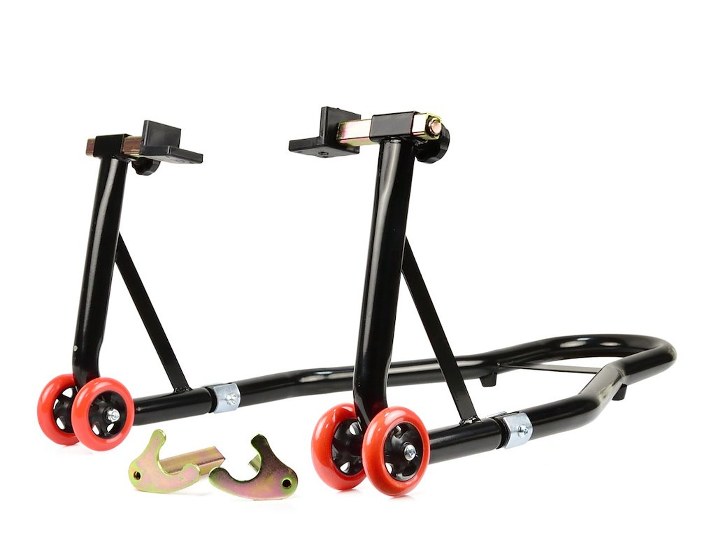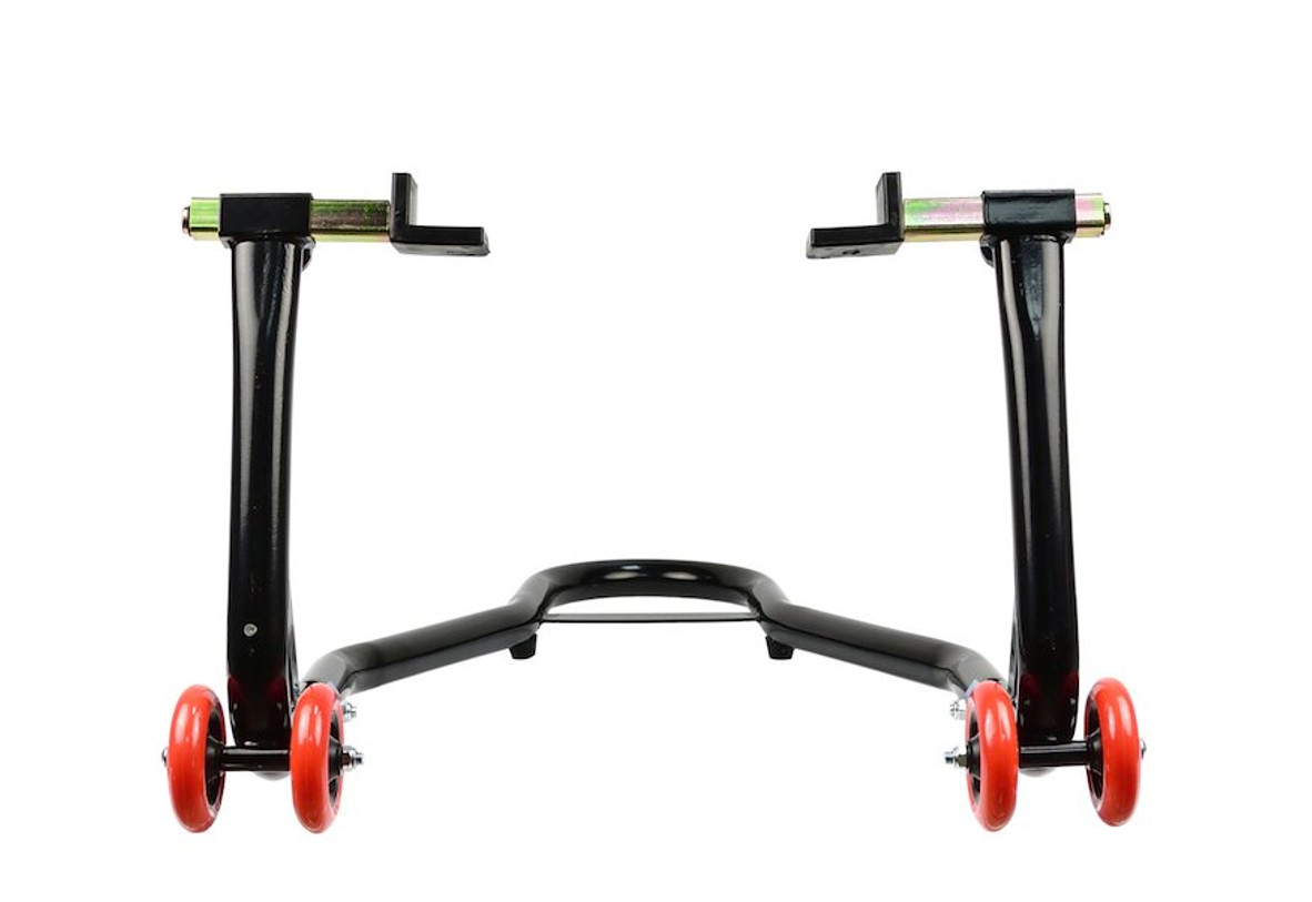 Stojak do kół motocykla umożliwiający łatwą naprawę i konserwację tylnego i przedniego koła. Duża powierzchnia mocująca zapewnia stabilność. Kompatybilny z większością modeli marek Ducati, Suzuki, Kawasaki, Honda, Yamaha, Aprilia, Triumph, BMW, UVM.