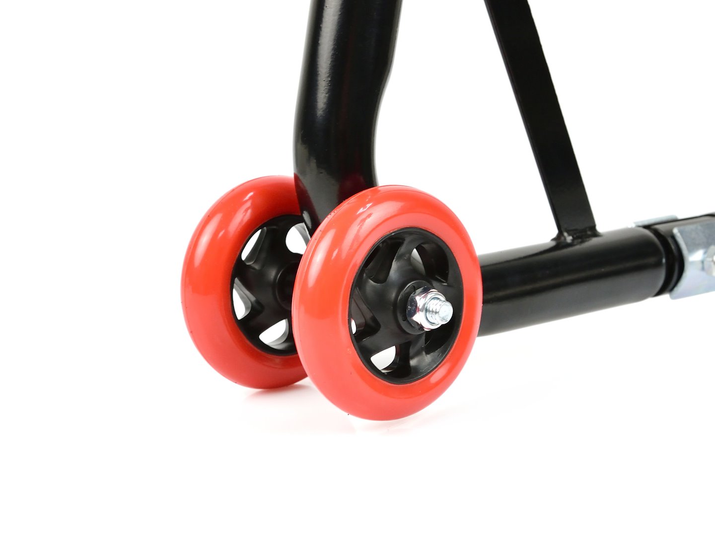 Wzmacniany stojak motocyklowy pod przednią i tylną oś. Do produkcji wykorzystano stalową rurę malowaną proszkowo. Dodatkowo, wzmacniana konstrukcja stojaka gwarantuje stabilne i bezpieczne podnoszenie motocykla. Kółka wykonano z wysokiej jakości tworzywa ABS. ✅ Specyfikacja techniczna(stojak tył): ✅ Specyfikacja techniczna(stojak przód):