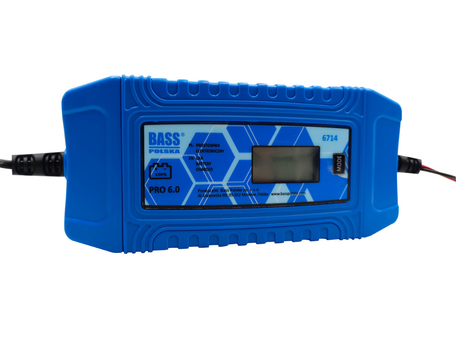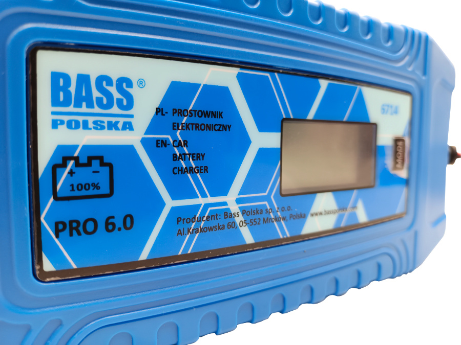 Prostownik Bass Polska jest przeznaczony do ładowania akumulatorów w obudowie otwartej, jak i szerokiej gamy akumulatorów kwasowo-ołowiowych w obudowie szczelnej, stosowanych w samochodach osobowych, motocyklach i niektórych innych pojazdów, np. Pojemność ładowanych akumulatorów wynosi: Specjalna konstrukcja umożliwia ponowne naładowanie praktycznie do 100% pojemności akumulatora. Ponadto, istnieje możliwość podłączenia akumulatora do prostownika na stałe tak, by utrzymywać akumulator w optymalnym stanie przez okres, w którym nie jest on używany i by nie doszło w tym czasie do jego uszkodzenia. Prostownik Bass Polska posiada łącznie 6 trybów ładowania dla różnych akumulatorów w różnych stanach. Dzięki temu, ładowanie jest bardziej wydajne i niezawod Praca prostownika jest kontrolowana przez wewnętrzny MCU (mikrokomputer). Po wybraniu żądanego trybu ładowania, prostownik rozpoznaje podłączony akumulator (napięcie, stan naładowania) i wylicza niezbędne parametry ładowania (napięcie ładowania, prąd ładowania). Pozwala to na ustalenie bezpiecznego i wydajnego procesu ładowania. Po wybraniu trybu ładowania nieodpowiedniego dla akumulatora lub w przypadku uszkodzenia akumulatora, proces ładowania nie zostanie zainicjowany. Prostownik będzie wyświetlać na wskaźniku kod błędu.