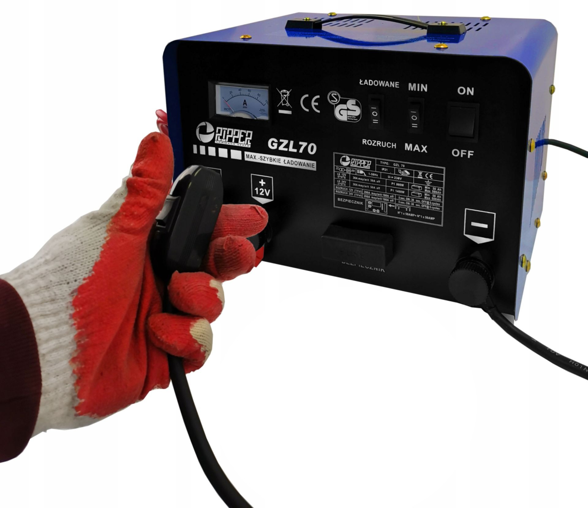 Niezwykle solidna i przemyślana konstrukcja, wyposażony w termiczny wyłącznik zabezpieczający przed uszkodzeniem, który rozłącza układ gdy przegrzeje się transformator i ponownie załącza po jego ostygnięciu. ROZRUCH STEROWANY Z PILOTA Prostownik posiada funkcję wspomagania rozruchu START, wystarczy ustawić prostownik na pozycję ROZRUCH i sterować pilotem wyposażonym w przełącznik na długim przewodzie. Szczytowy prąd rozruchu: 200A Rozruch do pojazdów/maszyn/urzadzeń wyposażonych w akumulatory 12V jak i 24!!! INTUICYJNY PANEL STEROWANIA ✅ Parametry techniczne: Prostownik posiada bezpieczniki, jeden zamontowany i 2 zapasowe Efektywne odprowadzanie ciepła jest bardzo ważne ze względu na nagrzewanie się prostowników podczas ładowania co może spowodować zapłon. Praktyczne rozwiązania ułatwiające codzienną pracę Prostownik został wyposażony w niezwykle przydatną rączkę za pomocą której możemy przenosić prostownik i ustawić go w dowolnym miejscu bez ryzyka ( poparzenia się, ubrudzenia , upuszczenia )