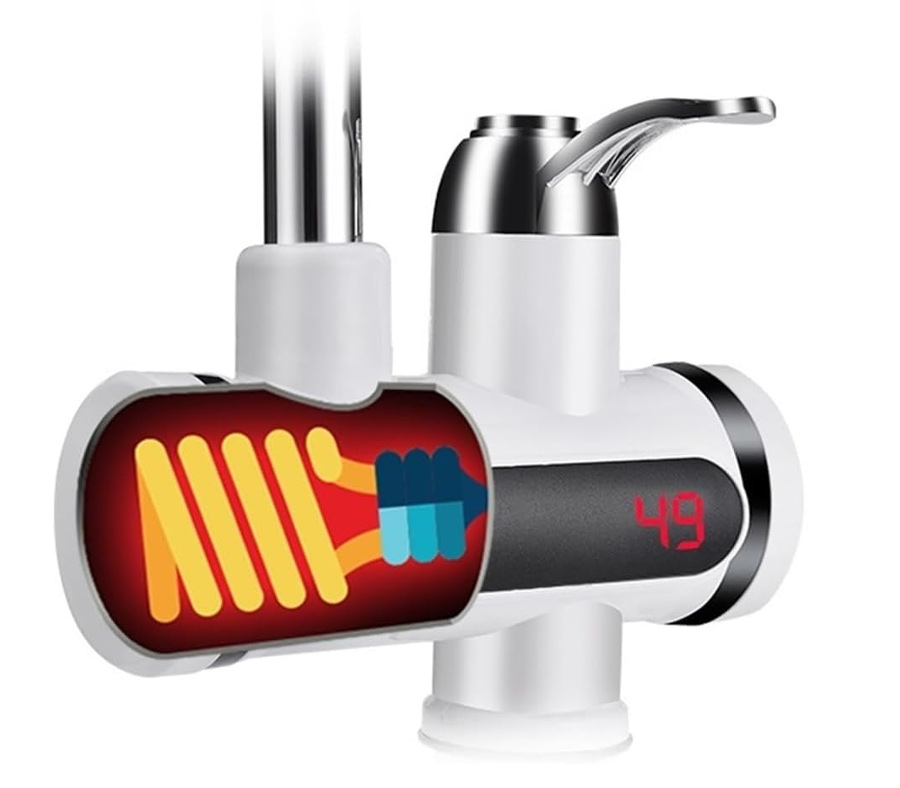 Rozgrzanie wody zajmuje urządzeniu jedynie 5 sekund, po czym przekazuje strumień ciepłej wody w dół, dzięki czemu możesz korzystać z niej nieprzerwanie. Proste i sprytne rozwiązanie w pomieszczeniach pozbawionych centralnego ogrzewania. Przepływowy podgrzewacz wody podnosi temperaturę bieżącej wody nawet do 60°C - wystarczy przekręcić rączkę. Czerwona lampka zasygnalizuje gotowość urządzenia do pracy. Jeśli jednak potrzebujesz tylko zimnej wody, po prostu cofnij rączkę podgrzewacza. Wygodne i łatwe w użyciu. ✅ Specyfikacja: