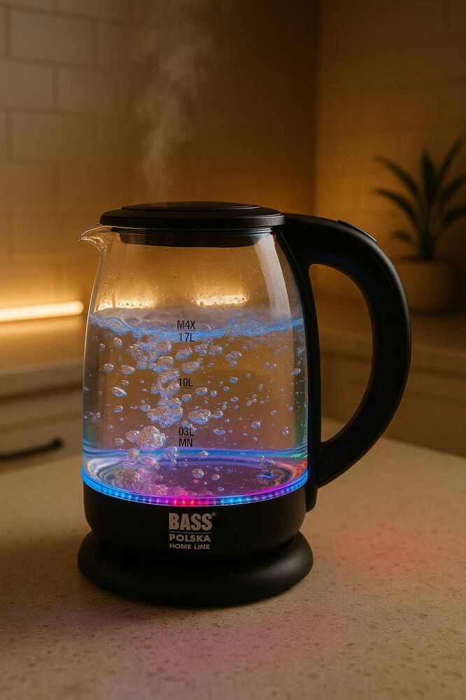 Prezentujemy wyjątkowy czajnik elektryczny marki Bass Polska, który łączy w sobie najnowsze technologie z eleganckim designem. Dzięki precyzyjnej regulacji temperatury i unikalnemu systemowi podświetlenia, przygotowanie ulubionych napojów staje się prawdziwą przyjemnością. Ekspresowe gotowanie - dzięki mocy 2200 W woda gotuje się w rekordowym czasie. Funkcja podtrzymania temperatury - automatycznie utrzymuje wybraną temperaturę wody. ⭐ Wymiary: 21,5 × 16 × 23 cm ⭐ Waga: 0,96 kg ⭐ Pojemność: 1,7 litra ⭐ Moc: 2200 W ⭐ Zasilanie: 220-240 V, 50/60 Hz