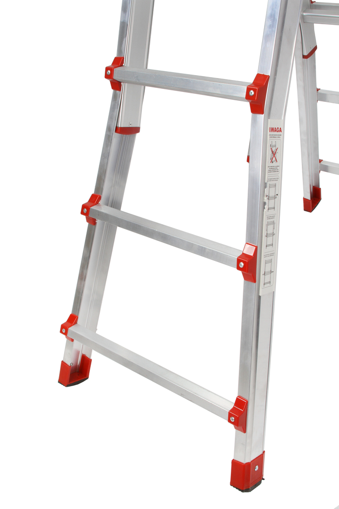 Konstrukcja drabiny wyposażona w mocne, stalowe przeguby, które umożliwiają płynne i szybkie zmienianie pozycji drabiny. Przeguby są nitowane do profilu drabiny, co umożliwia również ich wymianę (jako części ruchomej - eksploatacyjnej). Przeguby to również część wyróżniająca nasze drabiny na tle konkurencji. Zastosowane duże, stalowe, mocne przeguby charakteryzują się wysoką wytrzymałością, trwałością i niezawodnością. Dzięki swoim niewielkim wymiarom drabina po złożeniu jest łatwa w magazynowaniu oraz transporcie. Jej wysokość po złożeniu to zaledwie 119cm - dzięki temu bez problemu zmieści się w bagażniku nawet mniejszego samochodu. Całkowita waga drabiny to 9,8 kg - każdy bez problemu poradzi sobie z jej przeniesieniem i ustawieniem w żądanej pozycji. Dodatkowo elementy ryglujące oparte na systemie sprężyn zamontowane zostały w taki sposób aby ich obsługa była bezpieczna dla użytkownika. Regulacja wysokości odbywa się stopniowo i skok wynosi dokładnie 25cm. Drabina przegubowa 4x4 zgodnie z wymogami bezpieczeństwa jest wyposażona w ryflowane szczeble, co znacznie zwiększa bezpieczeństwo podczas korzystania z drabiny ✅ Dane techniczne :