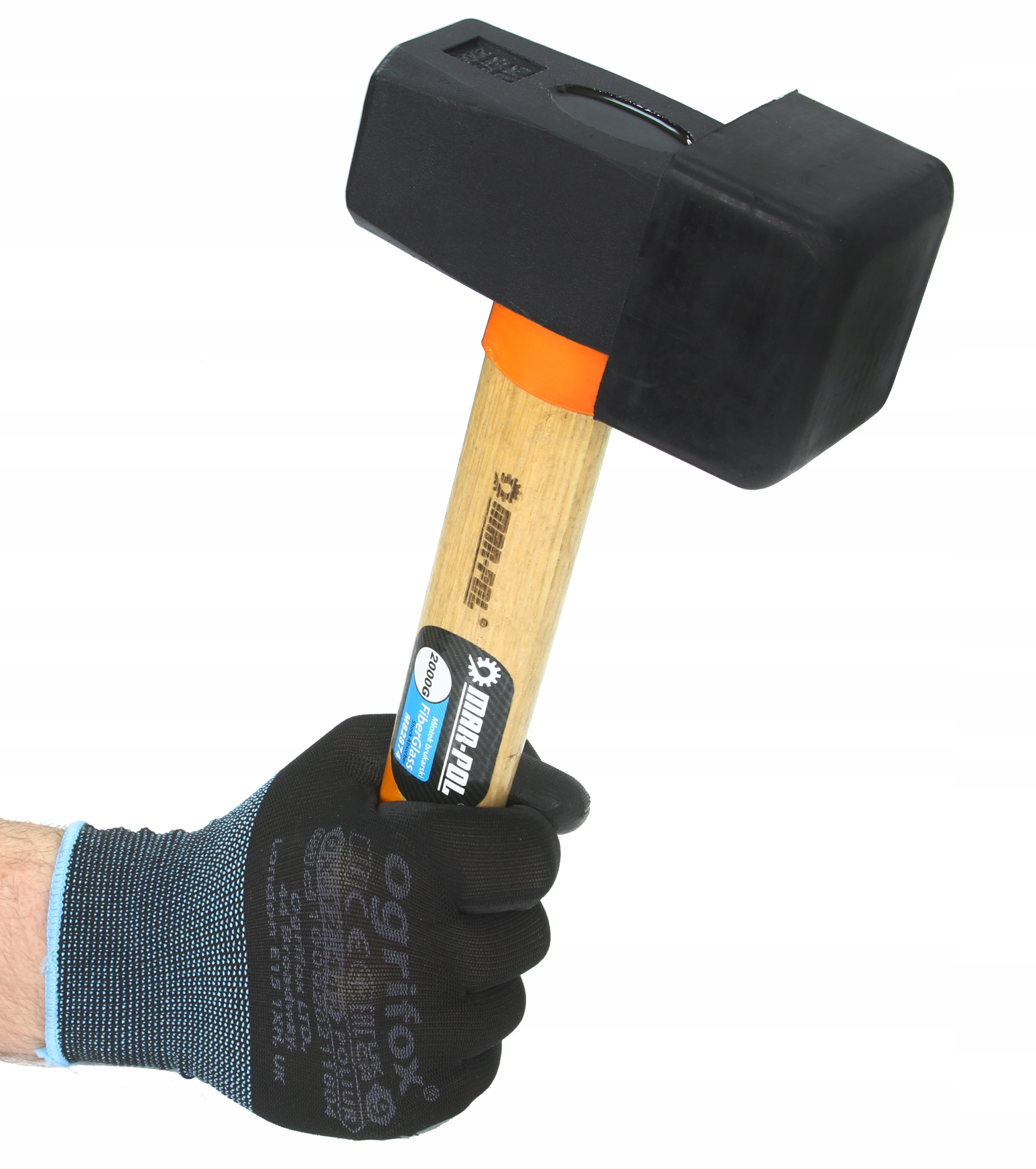 Młotek brukarski z nakładką gumową służy do: ✔️ pobijania, pozycjonowania kostki brukowej, płyt chodnikowych czy krawężników. ✔️Obuch wykonany ze stali o twardości DIN6475 osadzony na drewnianym, lakierowanym trzonku. Waga młotka 2000 gram.