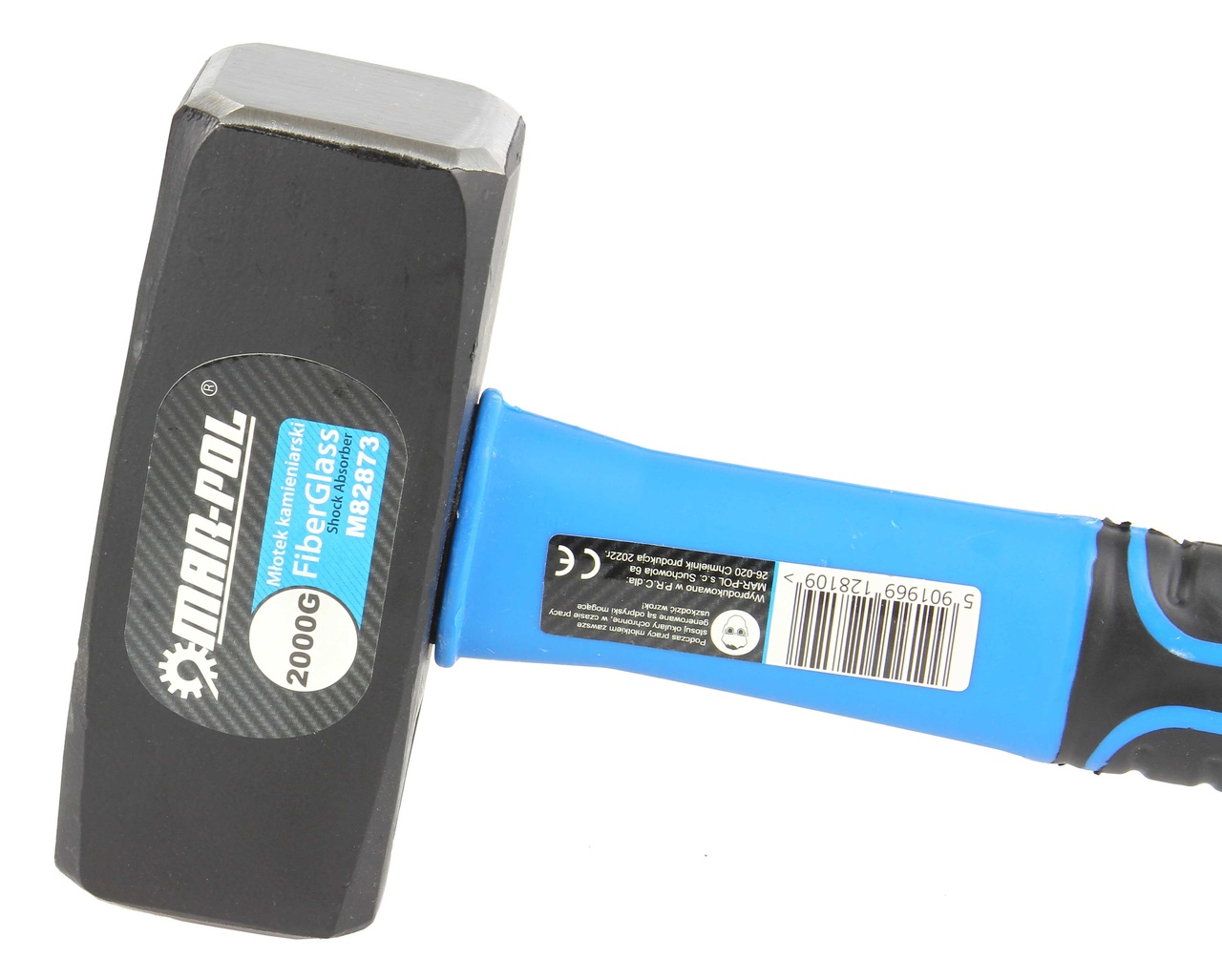 MŁOTEK KAMIENIARSKI 2000G MAR-POL Wysokiej jakości młot kamieniarski, posiada głowicę wykonaną ze stali wysokowęglowej odpowiednio hartowanej i odpuszczanej w celu zwiększenia plastyczności głowicy. Trzonek częściowo pokryto termoplastycznym kauczukiem Trzonek młotka został wykonany z włókna szklanego, które jest odporne na temperatury i zmiany pogodowe ✅ Specyfikacja: