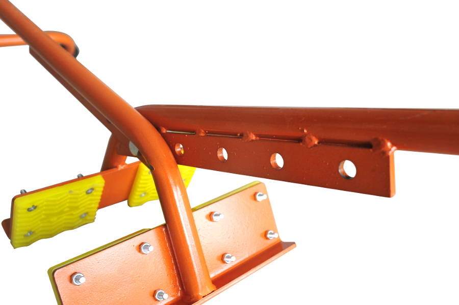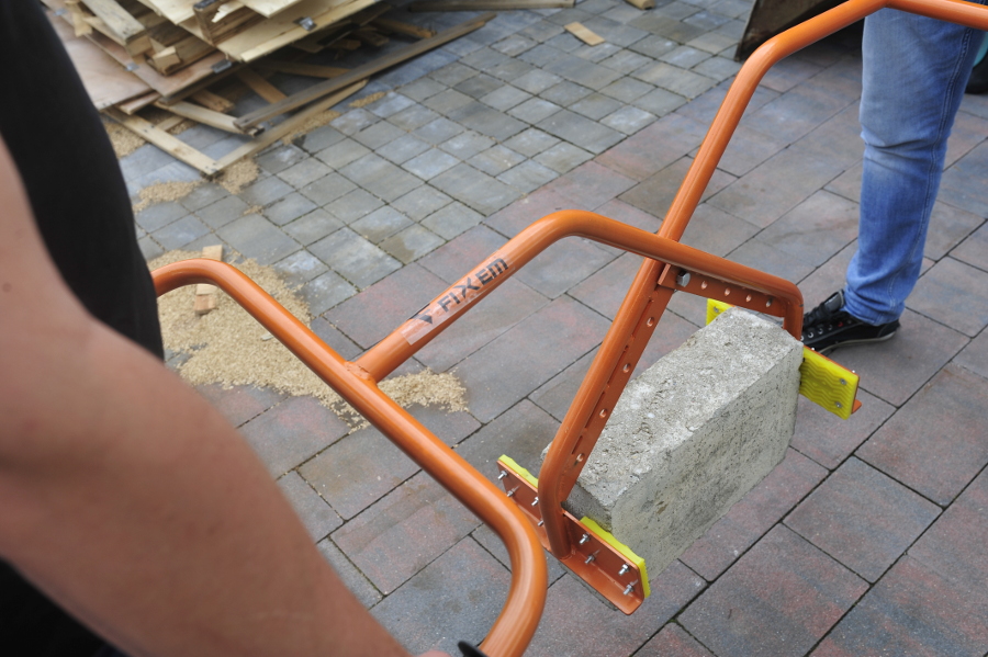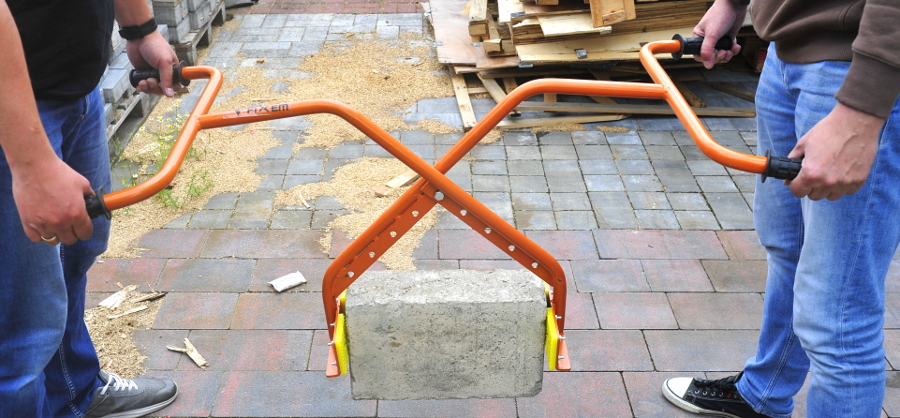 Chwytak brukarski przeznaczony do wygodnego i bezpiecznego przenoszenia oraz układania krawężników, obrzeży betonowych i innych prefabrykatów. Dzięki pięciostopniowej regulacji w zakresie od 15 do 55 cm narzędzie można precyzyjnie dopasować do różnych szerokości elementów. Solidna stalowa konstrukcja i wysoki udźwig do 120 kg gwarantują trwałość oraz niezawodność w każdych warunkach budowlanych.
