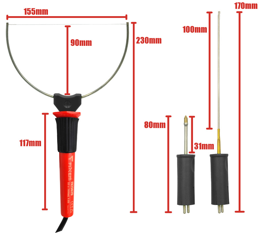 Nóż termiczny do styropianu FIXEM Przydatny do cięcia styropianu oraz wykonywania na nim grawerów. Zasilany sieciowo. Parametry : Końcówka z drutem 5s Końcówka z krótkim nożem 30s Końcówka z długim nożem 30s