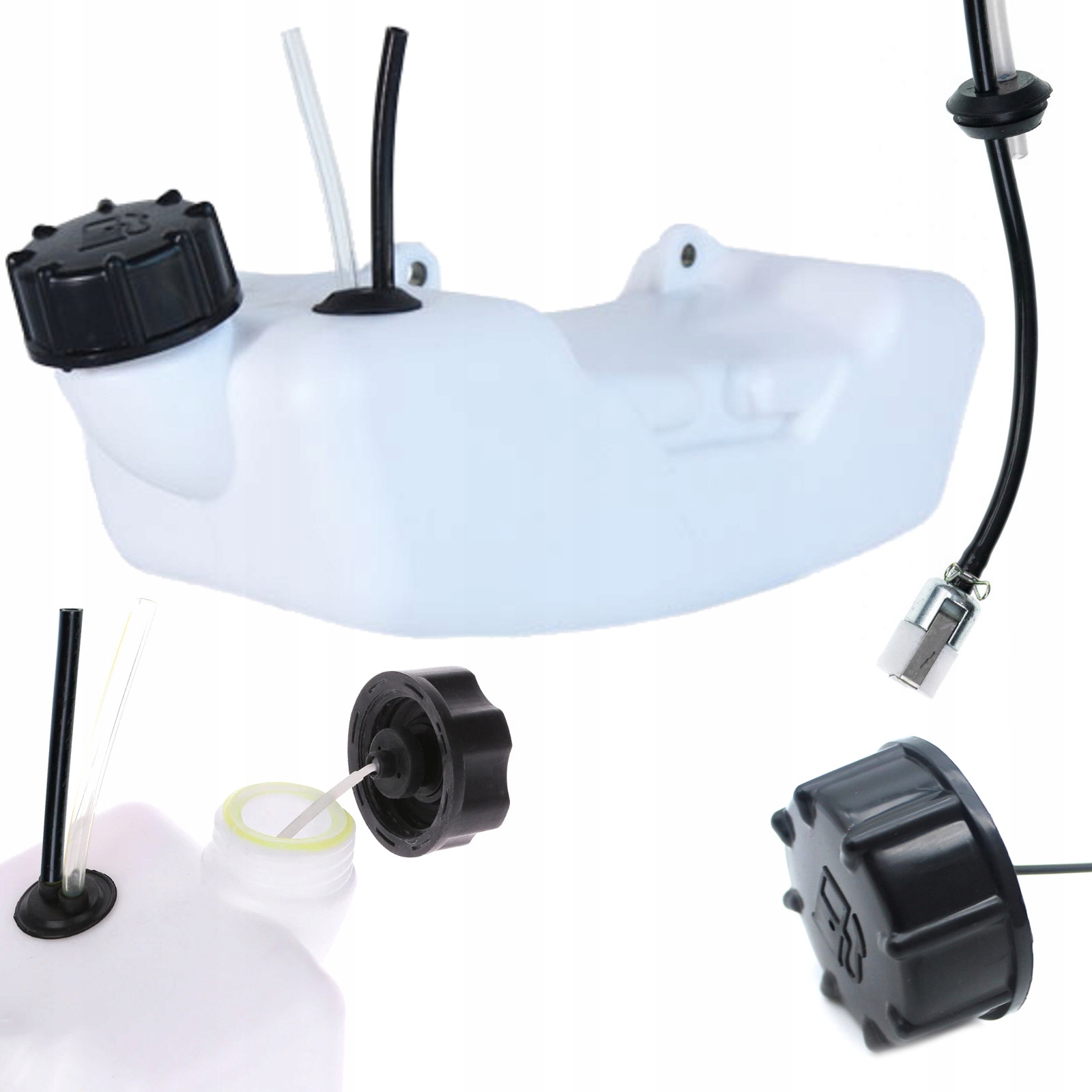 Zbiornik paliwa przeznaczony do kos spalinowych. Wyposażony w filtr paliwa z przewodami oraz korek z mocowaniem zabezpieczającym przed jego zgubieniem. Zbiornik jest mocowany do kartera silnika 2 śrubami. DANE TECHNICZNE: Pasuje do kos takich producentów jak :