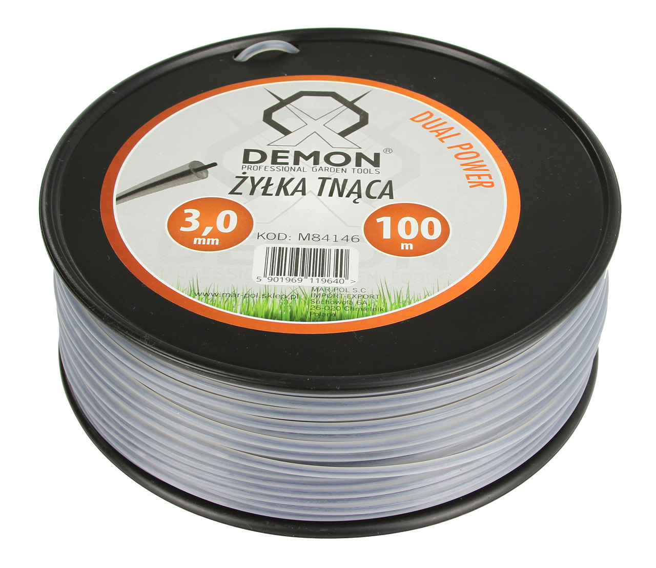 Profesjonalna żyłka tnąca DEMON DUAL POWER Przeznaczona do kos i podkaszarek spalinowych lub elektrycznych. Jakość materiału pozwala na cięcie przez wiele sezonów. Cechuje się on dużą wytrzymałością na uderzenia w twarde przedmioty. Żyłka jest giętka - podatna na konkretną siłę zamachową. Kształt nadaje jej większą wytrwałość przy bardzo wysokich obrotach oraz równocześnie ostre krawędzie profila pozwala na lekkość pracy.》》》 ŻYŁKA WZMOCNIONA ZBROJONA DO KOSY SPALINOWEJ PODKASZARKI 3mm 100m OKRĄGŁA M84146 《《《