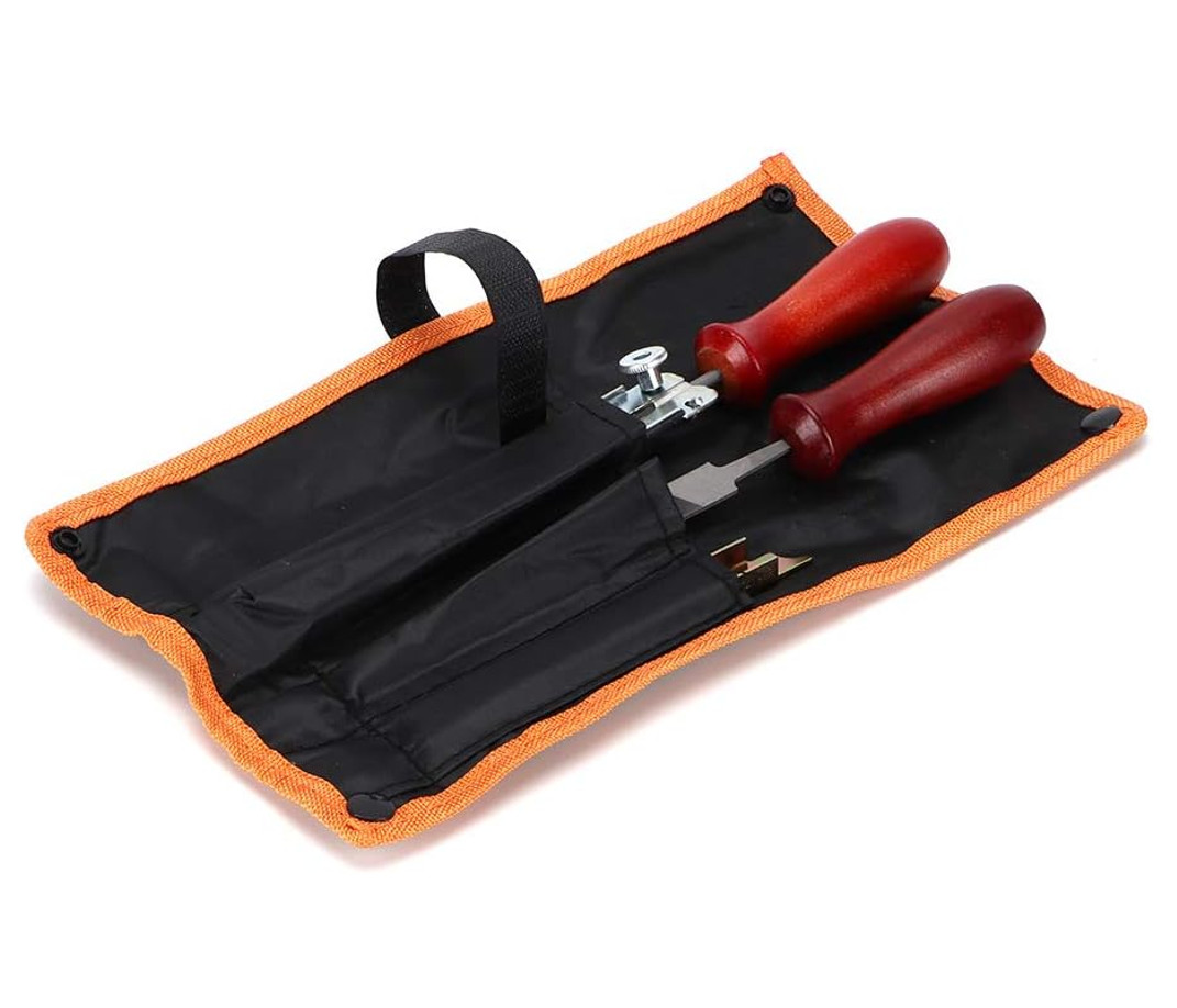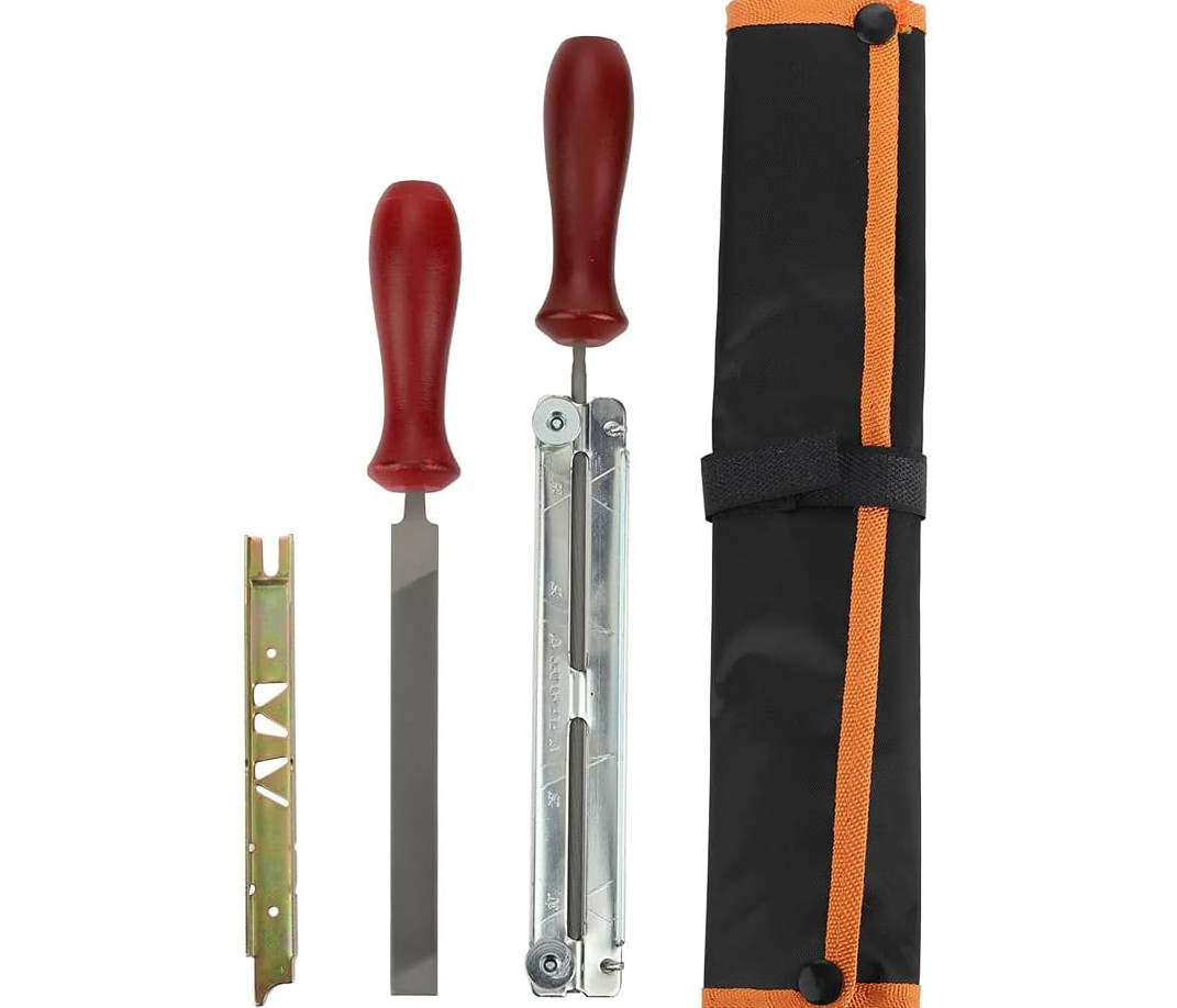 Czteroelementowy zestawy służący do ostrzenia łańcuchów tnących pilarek. W skład zestawu wchodzą: