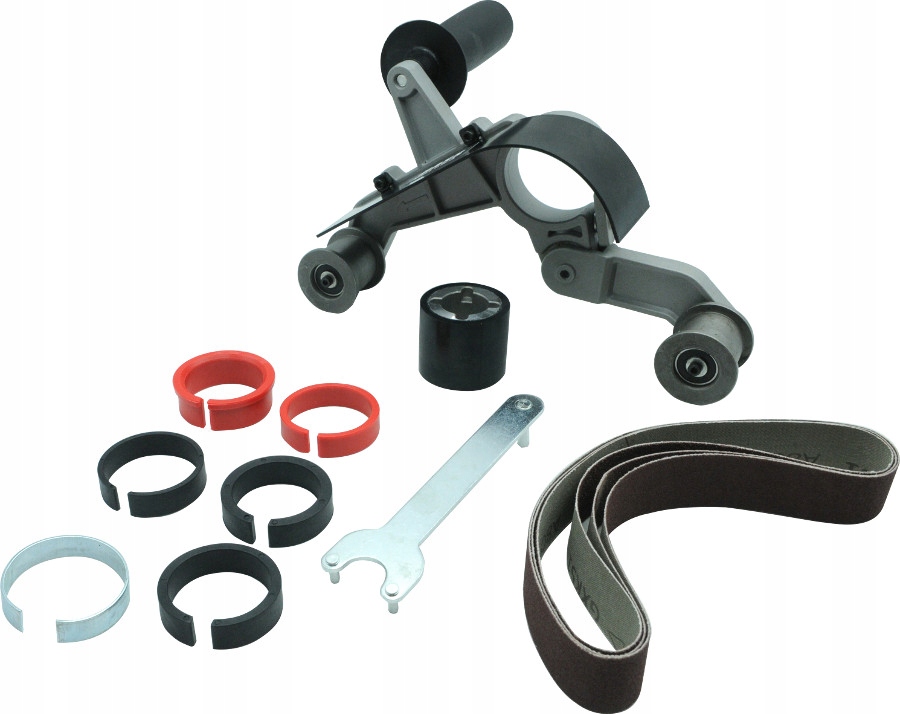 Przystawka szlifierska umożliwia błyskawiczną zmianę szlifierki kątowej w szlifierkę taśmową. Przystawka doskonale nadaję się do prac renowacyjnych takich jak szlifowanie okiennic, poręczy schodów i innych obłych powierzchni. Duży kąt opasania rury do 270° umożliwia 360-stopniową obróbkę rury w dwóch tylko etapach roboczych Zestaw zawiera ✔️ przystawka do szlifowania ✔️ 3 x pas bezkońcowy z płótna ściernego 28x530 mm, Adaptery na kołnierz : Aukcja dotyczy przystawki bez szlifierki. Przykładowe zdjęcia poniżej.